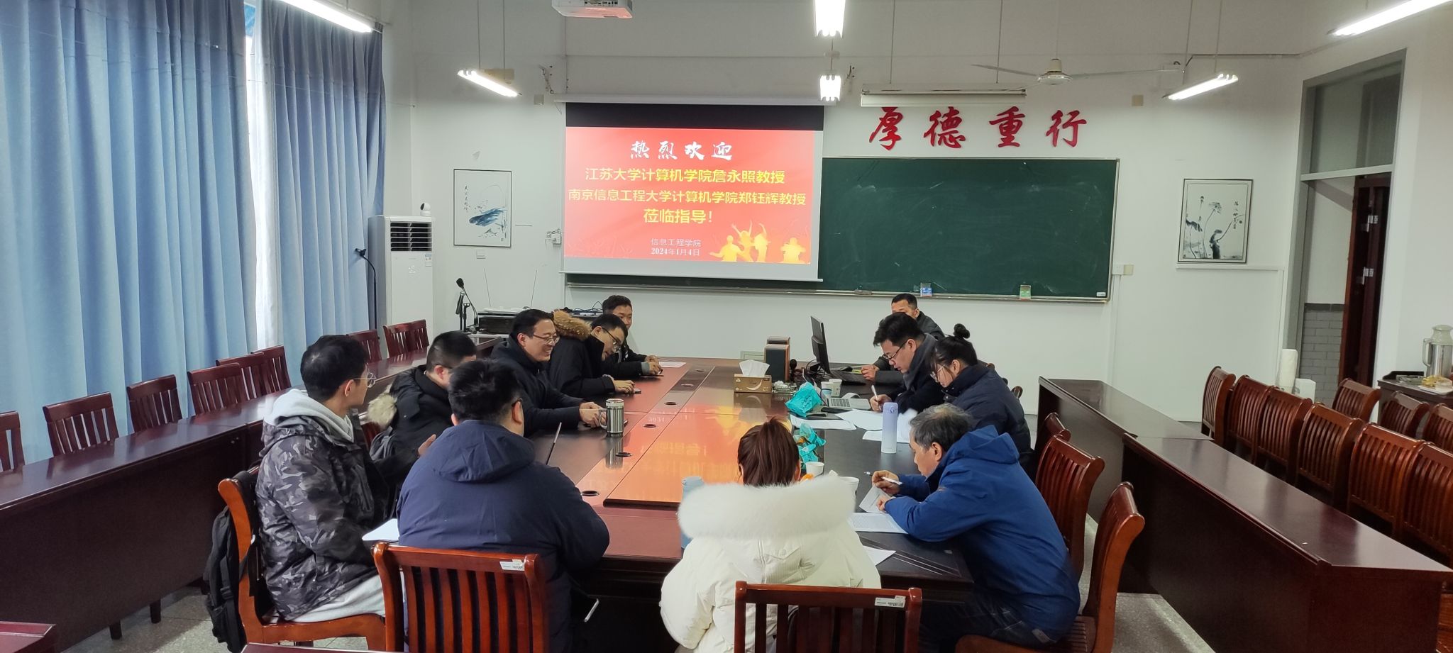 1月4日上午,在怀德楼B410会议室,信息工程学院邀请江苏大学计算机学院詹永照教授、南京信息工程大学计算机学院郑钰辉教授来校指导学院撰写国家基金申报书工作。会议由学院院长王如刚主持,副院长徐森及2024年国家基金申报教师参加。