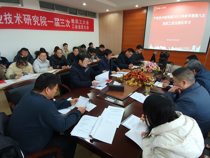 1月10日下午,在北校区知达楼AE209会议室,产业技术研究院组织开展2023年秋学期第八次教职工政治理论学习。党总支书记、院长严金龙主持会议,研究院全体教职工参加。