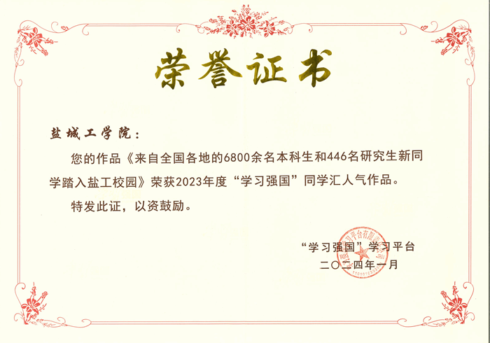 近日,“学习强国”全国平台从2023年同学汇发布的20000余条内容中,精选出200条作品,根据投票结果评选出人气作品Top100。真人赌博游戏_澳门赌博网-app*官网作品《来自全国各地的6800余名本科生和446名研究生新生踏入盐工校园》入围。1名同志被评为优秀管理员。