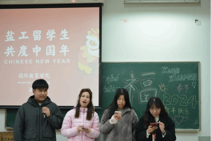 活动形式丰富多彩,内容健康有趣。留学生辅导员王珂老师向留学生们介绍了中国新年的传统习俗和历史文化,让大家更加深入地了解中国的传统文化。在之后的联欢活动环节中,留学生们积极参加了妙趣横生的“你比划我猜”猜春节相关词语、“击鼓传花”送新年祝福语游戏。在写“福”字迎龙年环节,留学生们在一笔一划中真诚送祝福,真切感受中国书法之美。