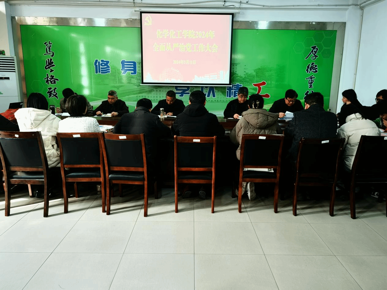 3月11日上午,化学化工学院在北校区学院201会议室召开全面从严治党工作会议。学院党委书记庞辉主持,学院全体科级以上干部、专业系(教研部、实验中心)主任、党支部书记参加会议。