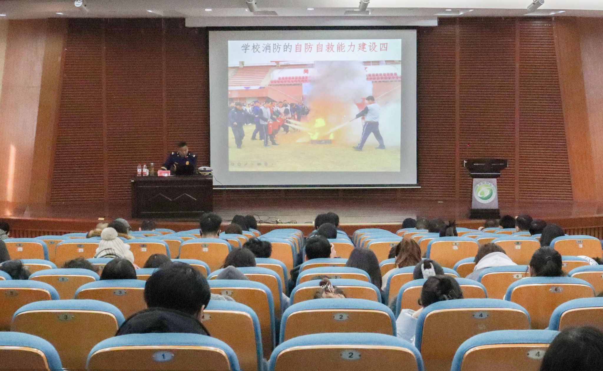 黄文胜作题为《学好消防 幸福一生》的讲座,围绕消防与生活、校园消防两个方面展开,重点结合真人赌博游戏_澳门赌博网-app*官网消防的自防自救能力建设,为师生讲解了日常工作生活中如何做好火灾的预防,遇到突发火情时第一时间如何应急处置,如何正确报警、扑救、疏散、自救和逃生等内容。讲座结束后,黄文胜讲解了灭火器、消火栓等灭火器材的使用方法,并指导部分师生进行了现场演练。