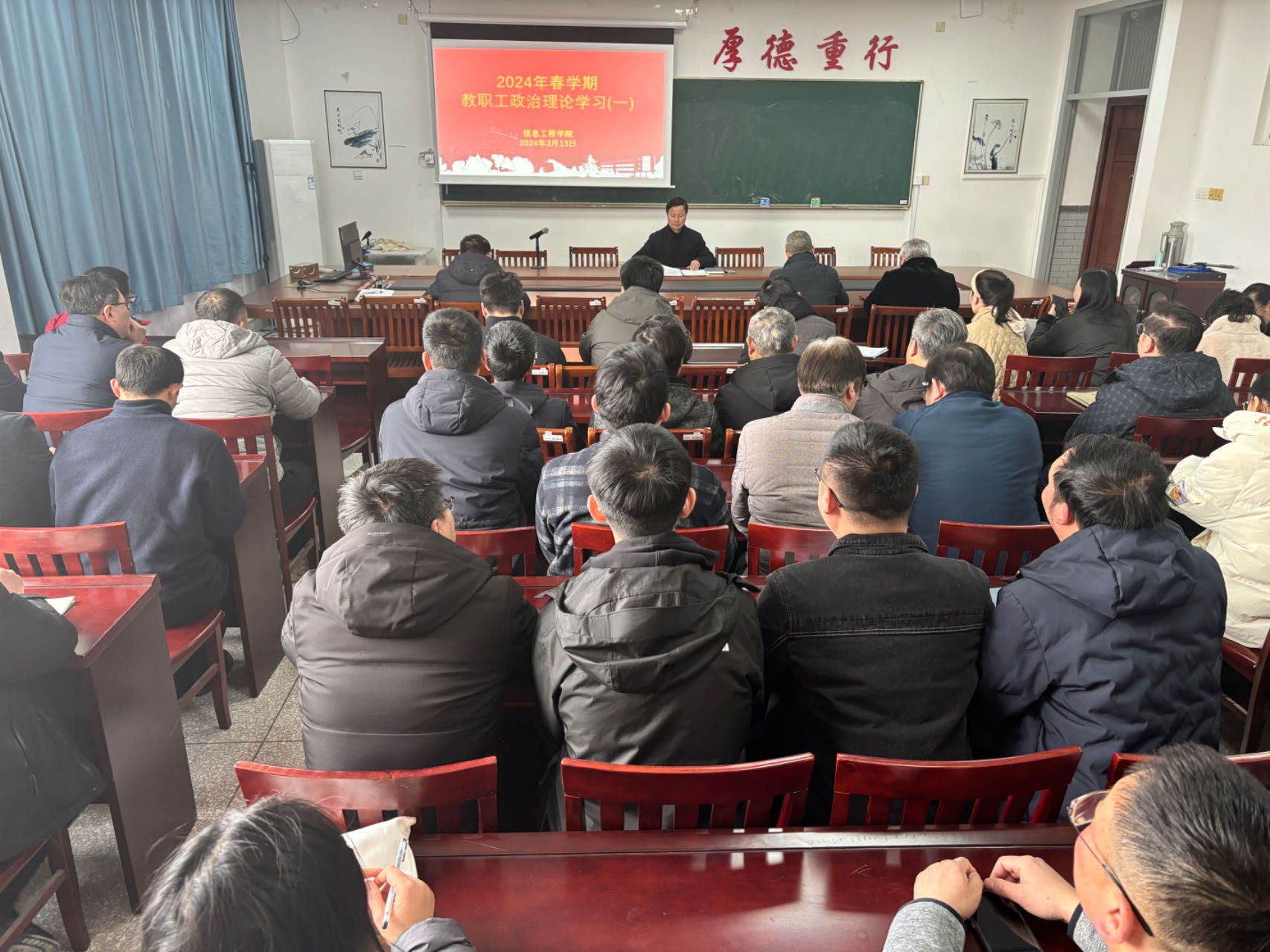 3月13日下午,信息学院在希望大道校区怀德楼B410会议室开展2024年春学期第一次教职工政治理论学习。会议由院党委书记王爱军主持,近80位教职工参加学习。