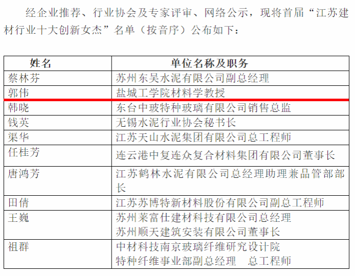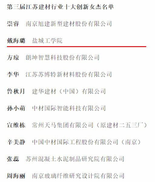 这一荣誉是对材料学院郭伟、田亮、戴海璐3位女教师在江苏省建材行业教学和科研方面卓越表现的肯定。