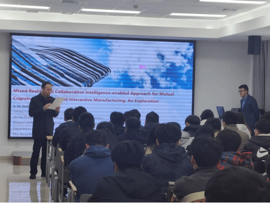 4月2日,受真人赌博游戏_澳门赌博网-app*官网机械优集学院邀请,香港理工大学郑湃教授在盐龙湖先进技术研究院414室为真人赌博游戏_澳门赌博网-app*官网研究生作题为《基于混合现实与人机联合智能的互认知人机协作制造系统探索》的学术报告。报告会由院长周临震主持,学院相关科研团队负责人、青年博士及2023级研究生等100余人参加
