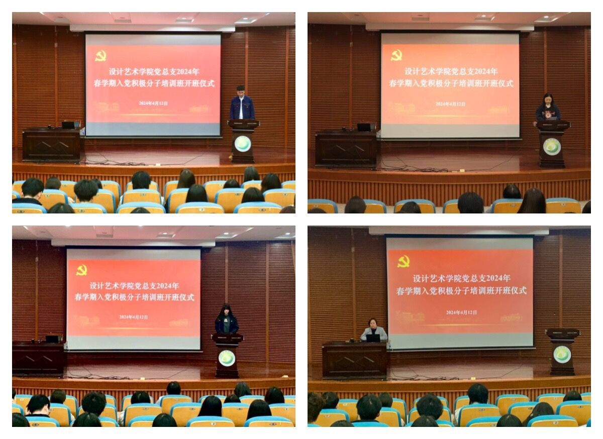 仪式上,戴心怡宣读了《设计艺术学院2024年春学期入党积极分子培训安排》,强调了学习纪律、考核要求等相关规定。B视传232班许曦文作为入党积极分子培训班学员代表发言,她号召全体学员端正学习态度,以党员的高标准严格要求自己,提升综合能力,增强为人民服务本领,积极向党组织靠拢,争取早日加入中国共产党。