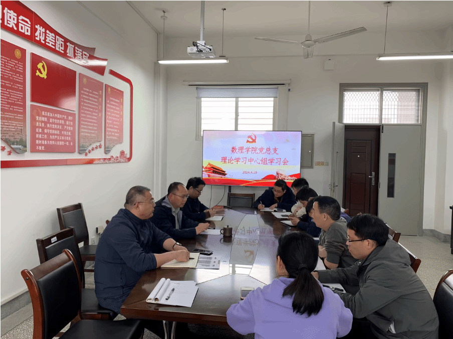 4月19日下午,在希望大道校区博学楼B503党员活动室,数理学院党总支理论学习中心组开展春学期第二次专题学习研讨,学院党总支书记魏伟华主持,理论学习中心组全体成员参加。
