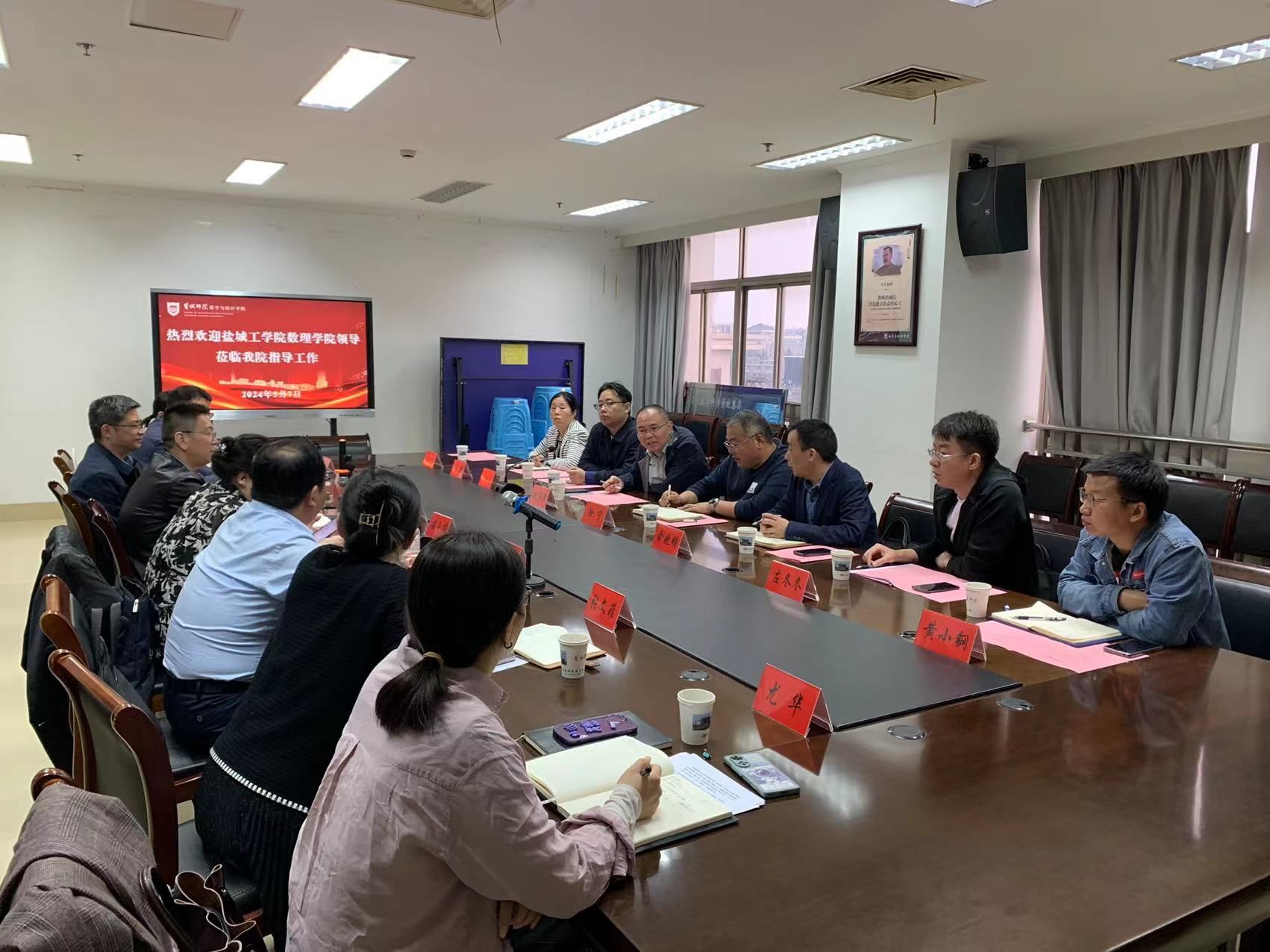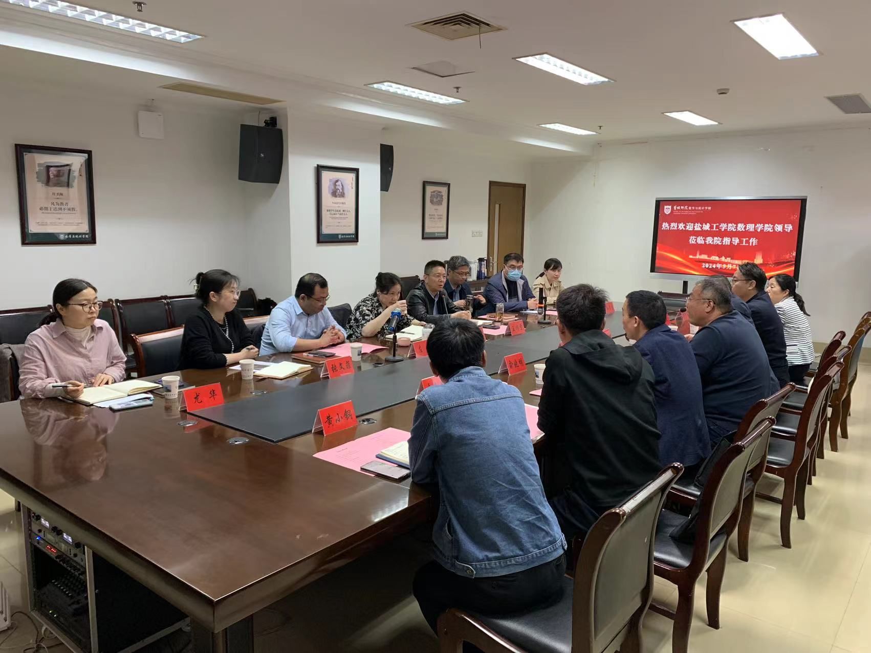 为进一步加强院校的联系与合作,推进学院在学科建设、科研工作、人才队伍建设等方面的工作。5月7日下午,数理学院党委书记魏伟华、副院长徐宁、各科室负责人一行赴盐城师范学院数学与统计学院调研交流。盐城师范学院数学与统计学院党委书记接玉芹、院长王作雷、党委副书记左飞、副院长王超、副院长李万斌以及各科室负责人等热情接待,并进行了交流座谈会。