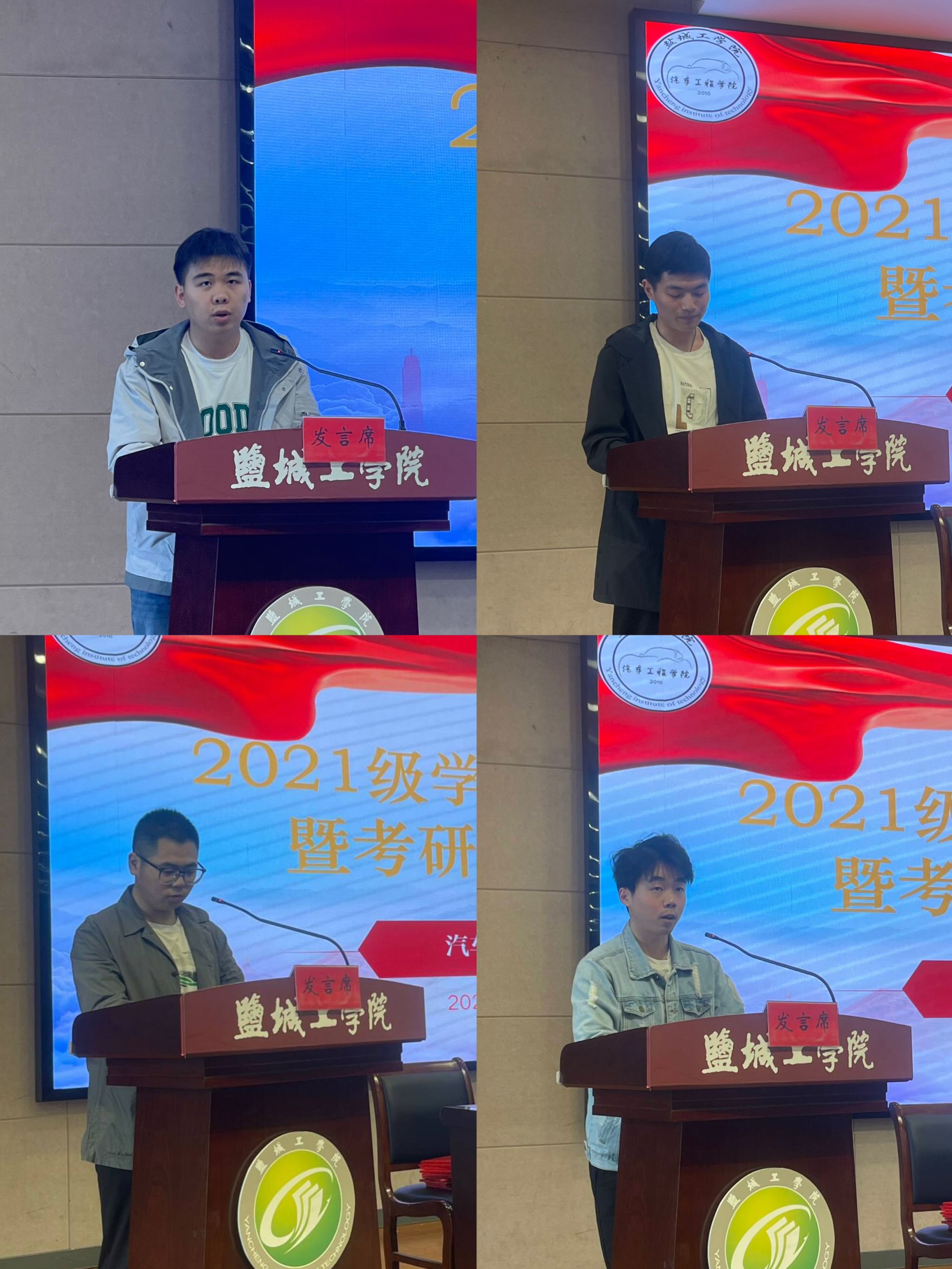 会议还对获得一等奖学金和省级学科竞赛获奖同学进行了颁奖,表彰他们在学业和竞赛中取得的优异成绩。学科竞赛优秀学生代表B车辆212胡寒分享了自己在竞赛中的经验与感悟;校一等奖获奖代表B能动202徐安骏就考研复习规划进行了详细的分享;省优秀毕业生获得者B能动202陈佳伟围绕择校以及数学复习分享了自己的考研经验;S汽车202夏立新则从自己的调剂经历出发,为同学们提供了宝贵的建议。