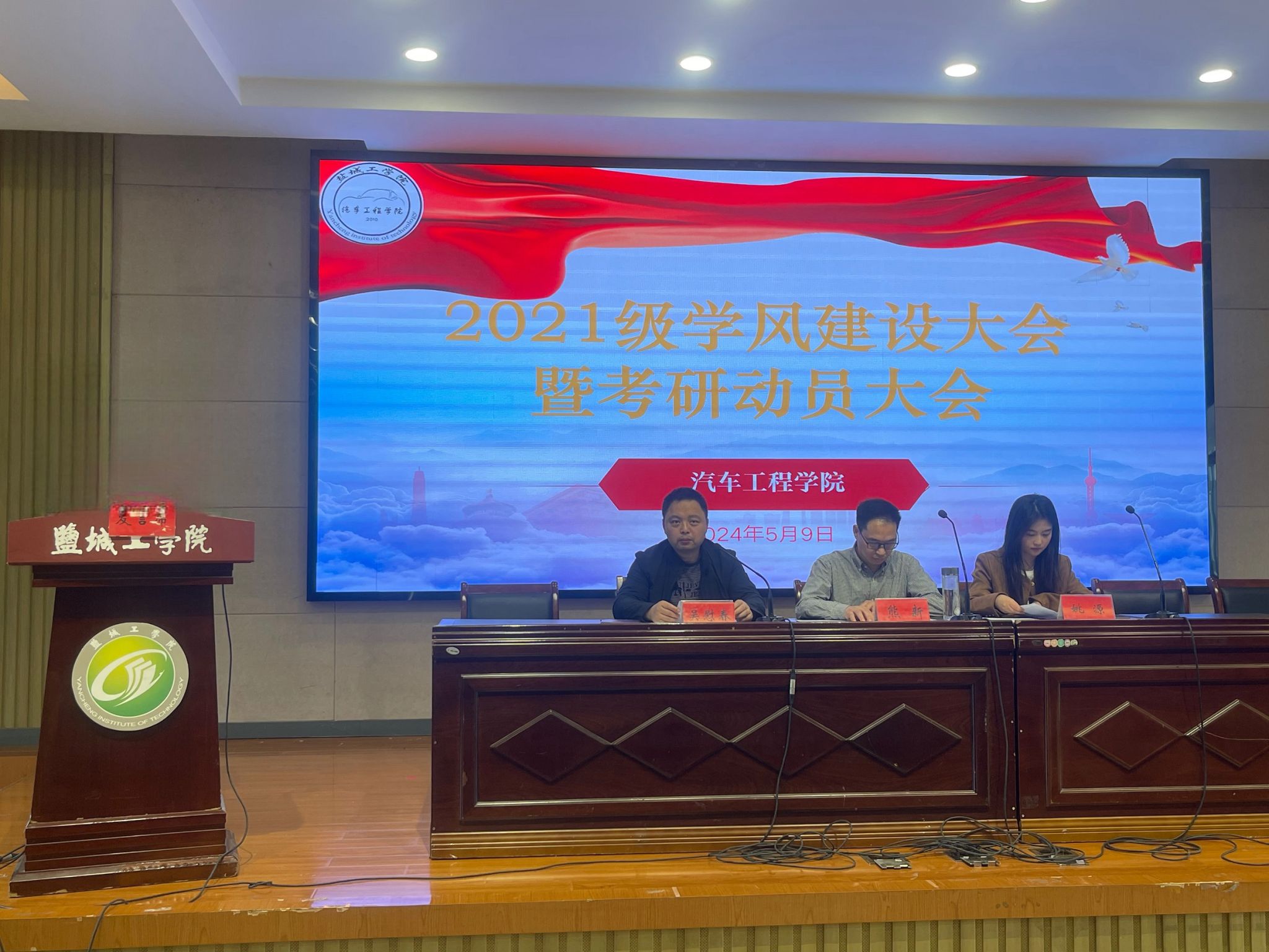 5月9日下午,汽车工程学院在机械馆报告厅举行了2021级学生学风建设大会暨考研动员会。会议由学工办主任吴慰春主持,学院副院长熊新、辅导员姚源出席,全体2021级学生参加会议。