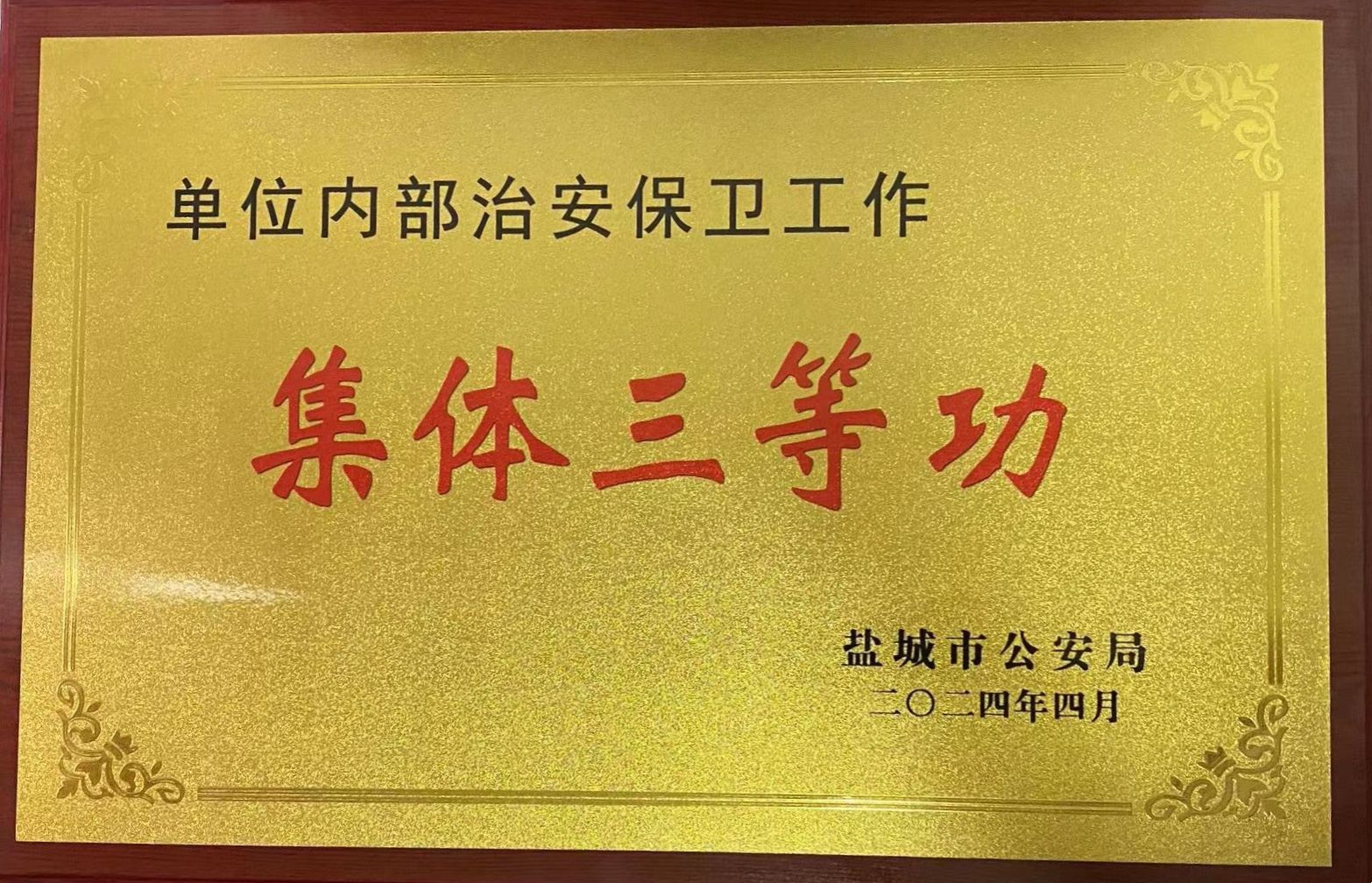 根据盐城市公安局2023年度企事业单位内部治安保卫工作表彰文件(盐公局〔2024〕112号),真人赌博游戏_澳门赌博网-app*官网安全保卫处再次荣立“集体三等功”。至此,真人赌博游戏_澳门赌博网-app*官网2021、2022、2023连续三年荣立“集体三等功”。真人赌博游戏_澳门赌博网-app*官网安全保卫处处长张晓东被盐城市公安局表彰为单位内部治安保卫工作“先进个人”。