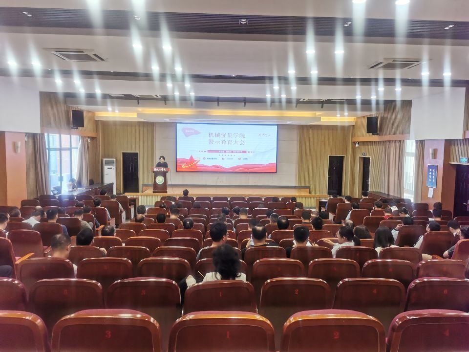 为进一步推动党纪学习教育走深走实,深入开展“510”思廉月活动,5月29日下午,机械优集学院在机械馆报告厅开展党纪学习教育暨警示教育大会,学院全体教职工100余人参加。会议由学院党委副书记、纪检委员马晓英主持。