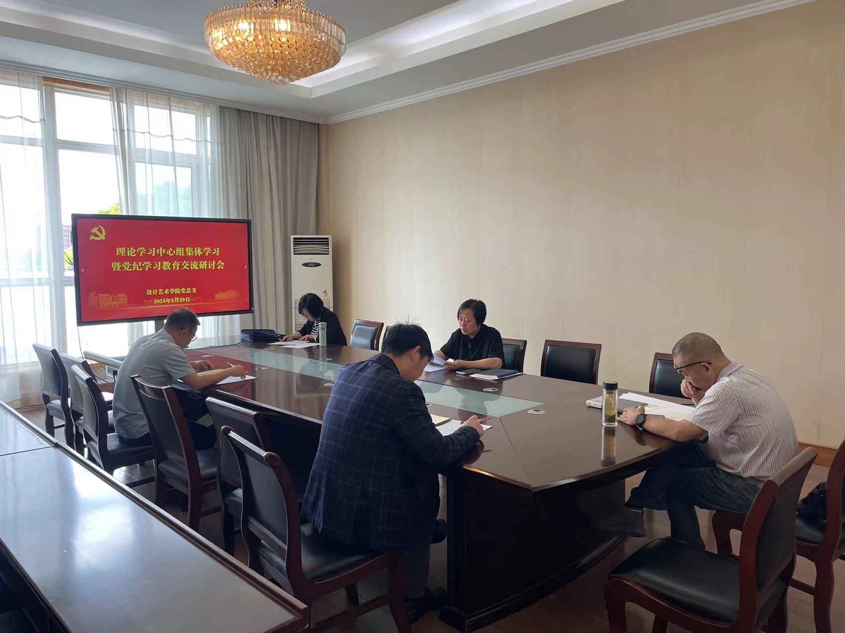 5月29日上午,设计艺术学院党总支理论学习中心组在润美楼A311东会议室举行集中学习研讨暨党纪学习教育交流研讨会,围绕《习近平真人赌博游戏_澳门赌博网-app*官网:中国式现代化论述摘编》《学习贯彻习近平总书记在文化传承发展座谈会上的重要讲话精神述评》《真人赌博游戏_澳门赌博网-app*官网:全面加强和改进新时代真人赌博游戏_澳门赌博网-app*官网美育工作的意见》、落实意识形态工作责任制相关制度、2023年以来中央纪委国家监委网站公布的形式主义、官僚主义典型问题等内容进行专题学习研讨。学习会由学院党总支书记胡凌霞主持,党总支理论学习中心组成员参加。