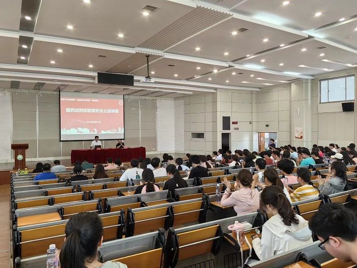 6月13日下午,真人赌博游戏_澳门赌博网-app*官网在建军东路校区化工楼报告厅举办“国药试剂实验室安全公益讲座”。本次讲座由国药集团培训讲师朱晓顺主讲,化学化工实验中心主任冒爱荣主持,化工学院、材料学院、环境学院和海生学院等涉化学院的300余名师生参加。