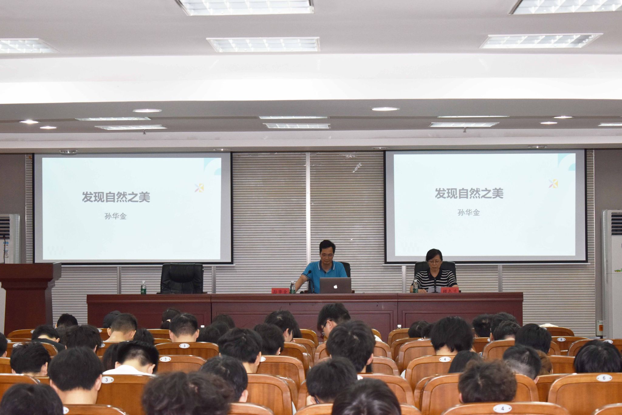 孙华金从法国著名雕塑家罗丹经典名言“美是到处都有的,对于我们的眼睛不是缺少美,而是缺少发现”展开,通过自己与摄影、自己与自然、自己与艺术的“美”的邂逅,鼓励大家要勇于尝试,去发现自然之美。他指出一个成功的摄影作品,要练就一双“摄影眼”,通过仔细观察发现美、善于思考升华美、精湛技艺捕捉美,以经典瞬间的留存,展现摄影的独特魅力。报告中,孙华金通过个人入选作品或获奖作品“美”的诠释,以大量经典自然瞬间的留存,启示大家要善于用眼睛、用镜头,去发现、去捕捉自然之美。此次报告会不仅为与会师生及摄影爱好者提供了一场视觉盛宴,同时也是一场“向美而行、以美育人”的生动美育辅导报告,激发大家对摄影艺术的热爱,对美好生活的热爱,从自然之美中丰富思想、塑造品格、汲取力量,追求更有高度、更有境界、更有品味的精彩人生。