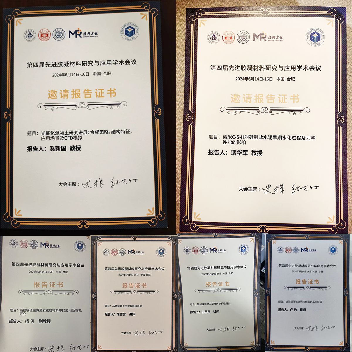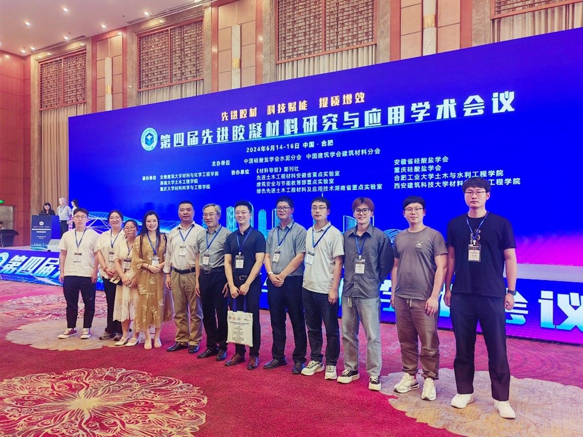 6月14日至16日,第四届先进胶凝材料研究与应用学术会议在合肥召开,来自全国高校从事建筑材料和土木工程领域研究的600余名专家学者参加。会议由中国硅酸盐学会水泥分会、中国建筑学会建筑材料分会主办,安徽建筑大学、湖南大学、重庆大学共同承办。真人赌博游戏_澳门赌博网-app*官网共14人参会,其中教师9人,研究生5人。6位教师先后作大会报告。