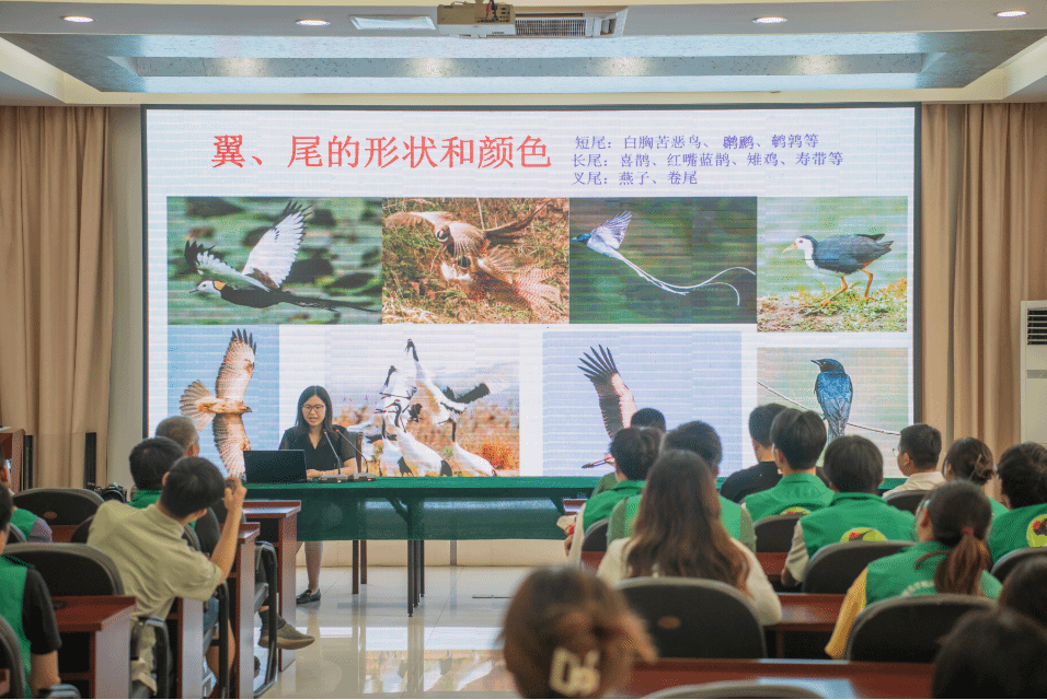 培训会上,盐城市湿地和世界自然遗产保护管理中心科研监测部副部长、高级工程师张亚楠为协会志愿者们作鸟类野外识别与调查专题讲座,她结合一系列生动有趣的鸟类图片和音频,详细介绍了如何抓住关键特征辨识鸟类,并介绍了国内鸟类的六大生态类群。在此基础上,分享了盐城地区的部分常见鸟类信息,包括外形特征、分布区域和生活习性等等。