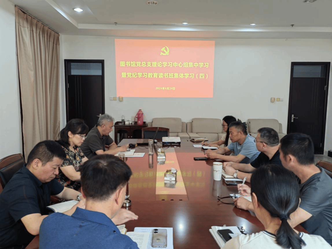 6月24日上午,图书馆党总支在图书馆D805会议室开展理论学习中心组春学期第四次集体学习暨党纪学习教育专题读书班第四次专题学习。党总支书记花爱军主持会议,理论学习中心组全体成员参加。