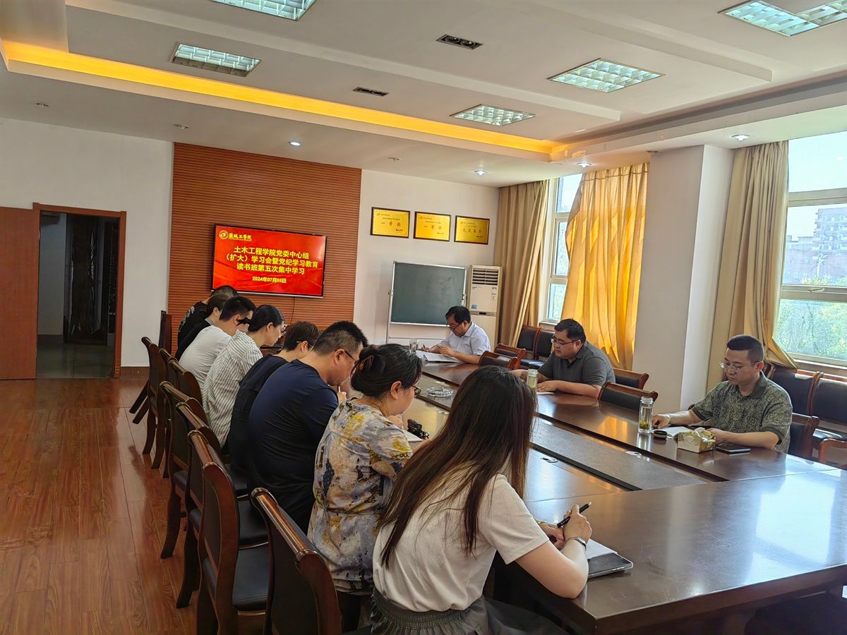 7月5日下午,土木学院党委在南校区土木馆会议室A206召开理论学习中心组(扩大)学习会暨党纪学习教育读书班第五次集中学习。会议重点学习了习近平总书记真人赌博游戏_澳门赌博网-app*官网:全面加强党的纪律建设的重要论述、习近平总书记在中共中央政治局第十五次集体学习的重要讲话精神和《中国共产党纪律处分条例》,传达了校党纪学习教育相关文件精神。会议由学院党委书记谷伟主持,学院党委理论学习中心组成员和各党支部书记参加。