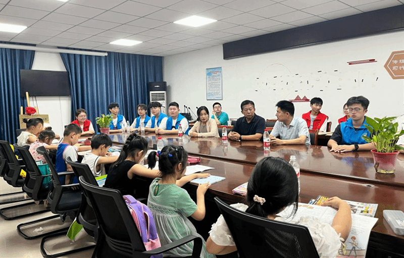 石南社区党总支书记柳张峰介绍了社区“明日之星”爱心暑托班的建设情况,对信息学院夏唯壹同学连续4年带领志愿者团队为社区留守儿童进行公益辅导给予肯定,对信息学院暑期实践团表示衷心感谢。戴建表示,要培养担当民族复兴大任的时代新人,持续提高大学生实践育人工作成效,引导大学生在社会实践中受教育、长才干、作贡献,营造关心关爱留守儿童的良好氛围,进一步提高公益辅导和爱心教育质量,让少年儿童有个充实而又快乐的暑期。