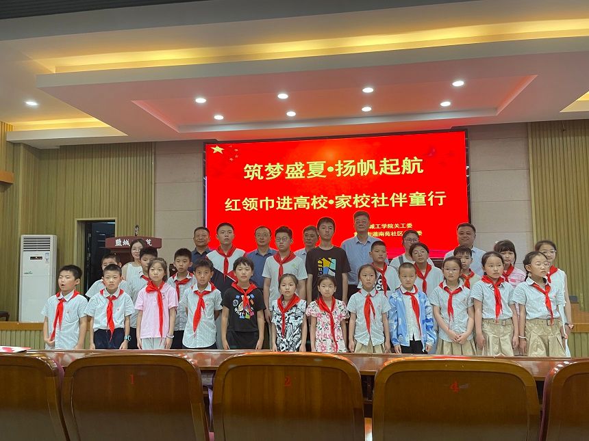 为贯彻落实教育部等十三部门《真人赌博游戏_澳门赌博网-app*官网:健全真人赌博游戏_澳门赌博网-app*官网家庭社会协同育人机制的意见》文件精神,充分发挥校地合作优势,让小学生提前感受大学的环境氛围,进一步激发学习兴趣,坚定理想信念,7月24日上午,校关工委与南苑社区关工委在南校区联合举办“筑梦盛夏?扬帆起航——红领巾进高校?家校社伴童行”主题活动。校离退休党工委书记、关工委办公室主任谷文华,后勤保障集团总经理潘文东、原党委书记周云峰,关工委副主任左元斌,离退休五支部副书记徐拥政,盐南高新区关工委常务副主任杭文林,南苑社区党委书记王爱军,黄海街道关工委负责人杨雪,盐城市第一小学少先队辅导员戚兰兰等和优秀小学生及家长代表等50多人参加活动。