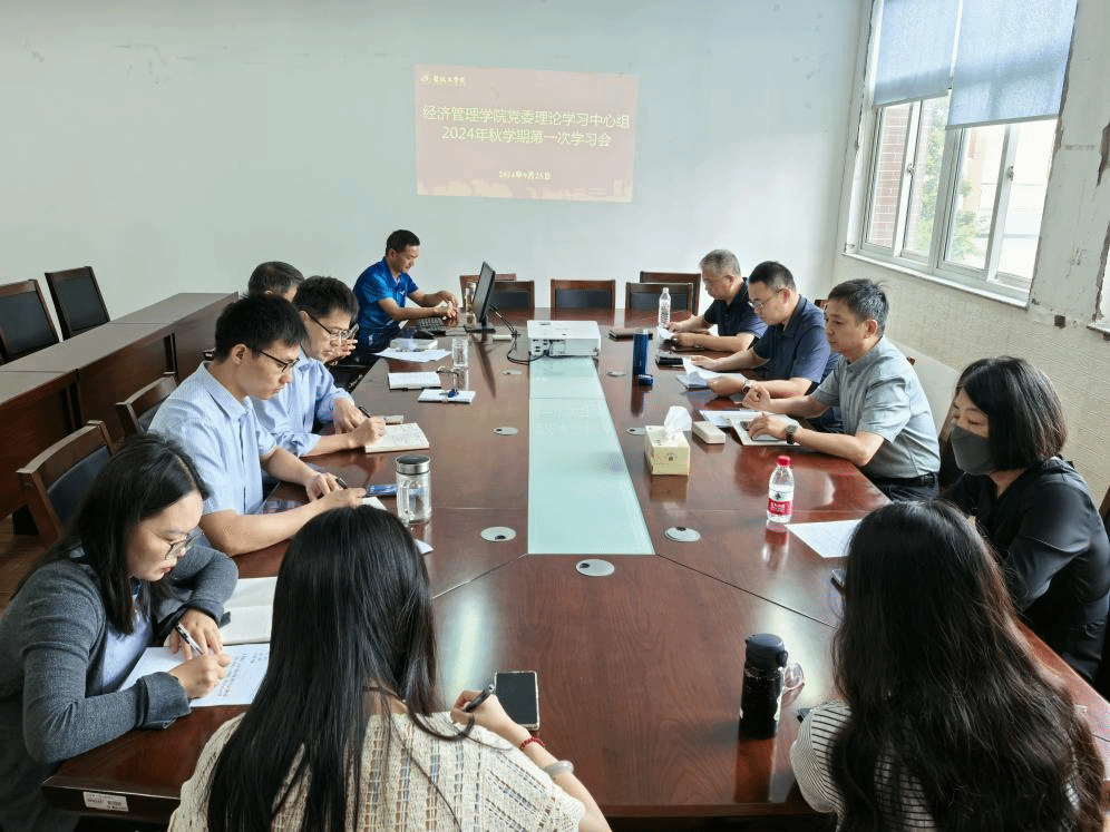 9月25日上午,经济管理学院党委理论学习中心组在仁和楼B202会议室召开2024年秋学期第一次集体学习会。党委书记陈阳主持会议,全体中心组成员参加,各专业系主任列席。