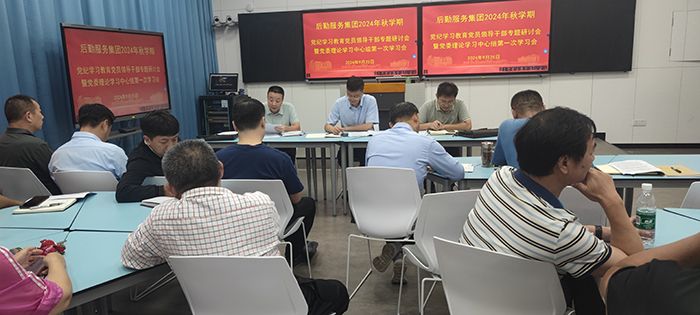 9月25日下午,在希望大道校区博学楼D314,后勤服务集团党委理论学习中心组召开党纪学习教育党员领导干部专题研讨会暨党委理论学习中心组第一次学习会。集团党委书记李刚主持会议,中心组全体成员参加。