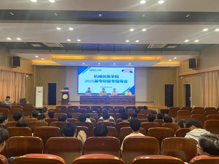 2025年全国硕士研究生考试预报名在即,为帮助考研学生更好地进行志愿填报,9月25日下午,在机械馆三楼报告厅,机械优集学院联合“一站式”学生社区召开考研报名指导会。学院副院长卢倩、党委副书记闫小民、研究生秘书杭桂华、毕业班辅导员和考研学生等200余人参加,会议由学工办副主任程云庆主持。