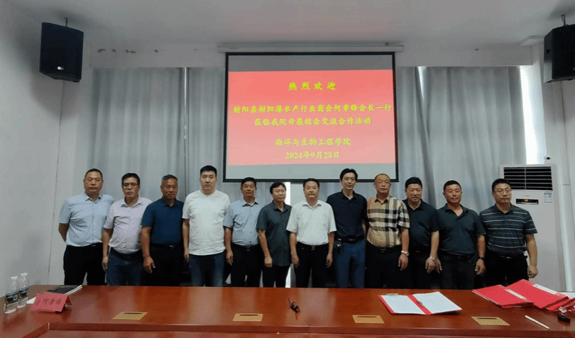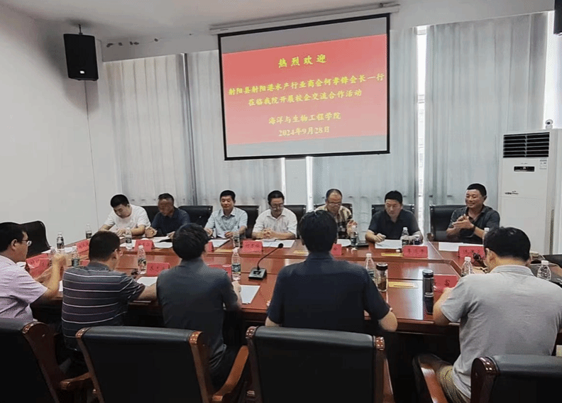 近日,射阳县射阳港水产行业商会会长何孝锋、党支部书记陈瑜等一行到真人赌博游戏_澳门赌博网-app*官网海生学院调研交流。海生学院院长彭斌、海洋技术系主任吕富、盐城市养殖协会会长邵鹏、盐城市水产科学研究院办公室主任朱爱民等参加调研交流会。交流会由副院长齐志涛主持。