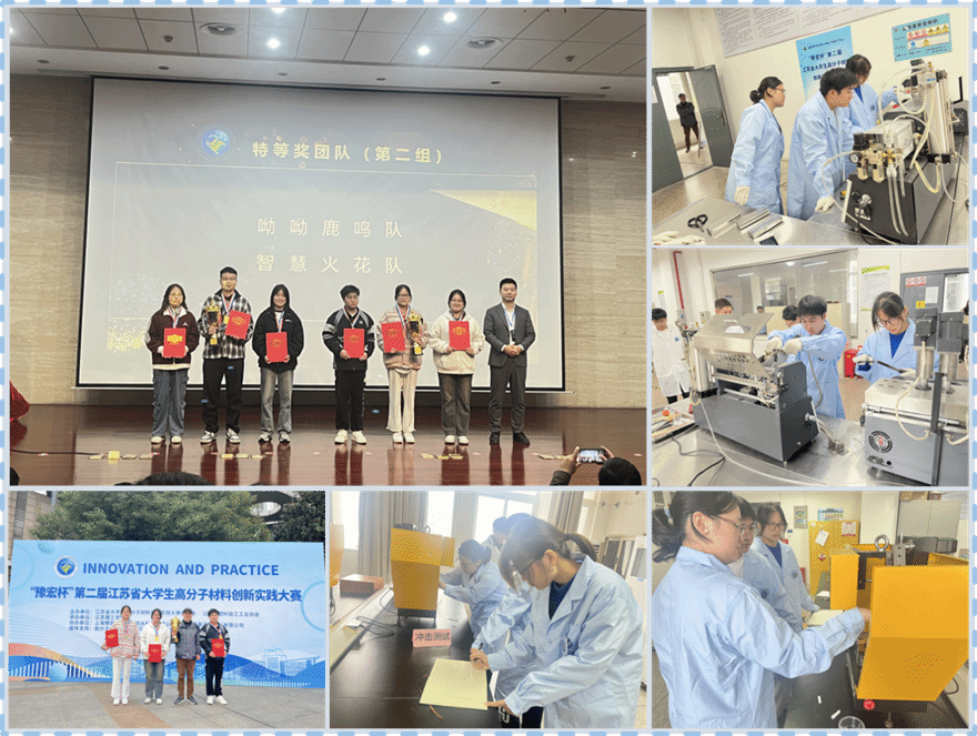 11月15日-17日,“第二届江苏省大学生高分子材料创新实践大赛”在常州举行。本次大赛由江苏省大学生高分子材料创新实践大赛委员会和江苏省塑料加工协会共同主办,江苏理工学院承办。真人赌博游戏_澳门赌博网-app*官网材料学院代表队参加本次大赛,与来自常州大学、江南大学、西安工业大学、江苏海洋大学等全国多所院校的70余名师生同台竞技,展开了一场精彩纷呈的高分子材料技能竞赛。