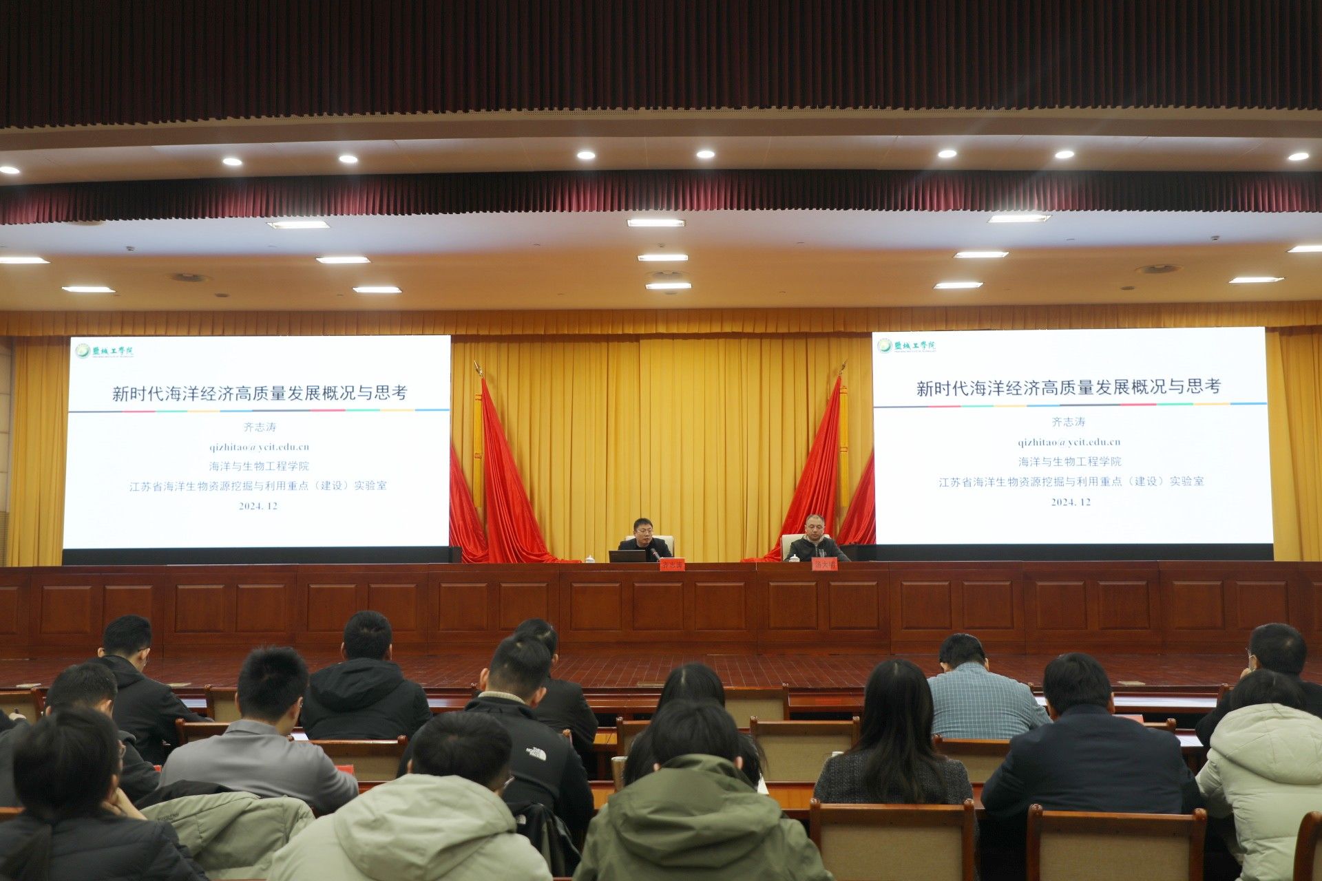 12月16日晚,应中共盐城市委宣传部、中共盐城市委市级机关工委、中共盐城市委党校的邀请,海生学院齐志涛教授做客“紫金讲坛联盟” 周一大讲堂,在市行政中心3楼东报告厅作题为《新时代海洋经济高质量发展概况与思考》的报告。报告会由盐城市级机关工委副书记汤大明主持。