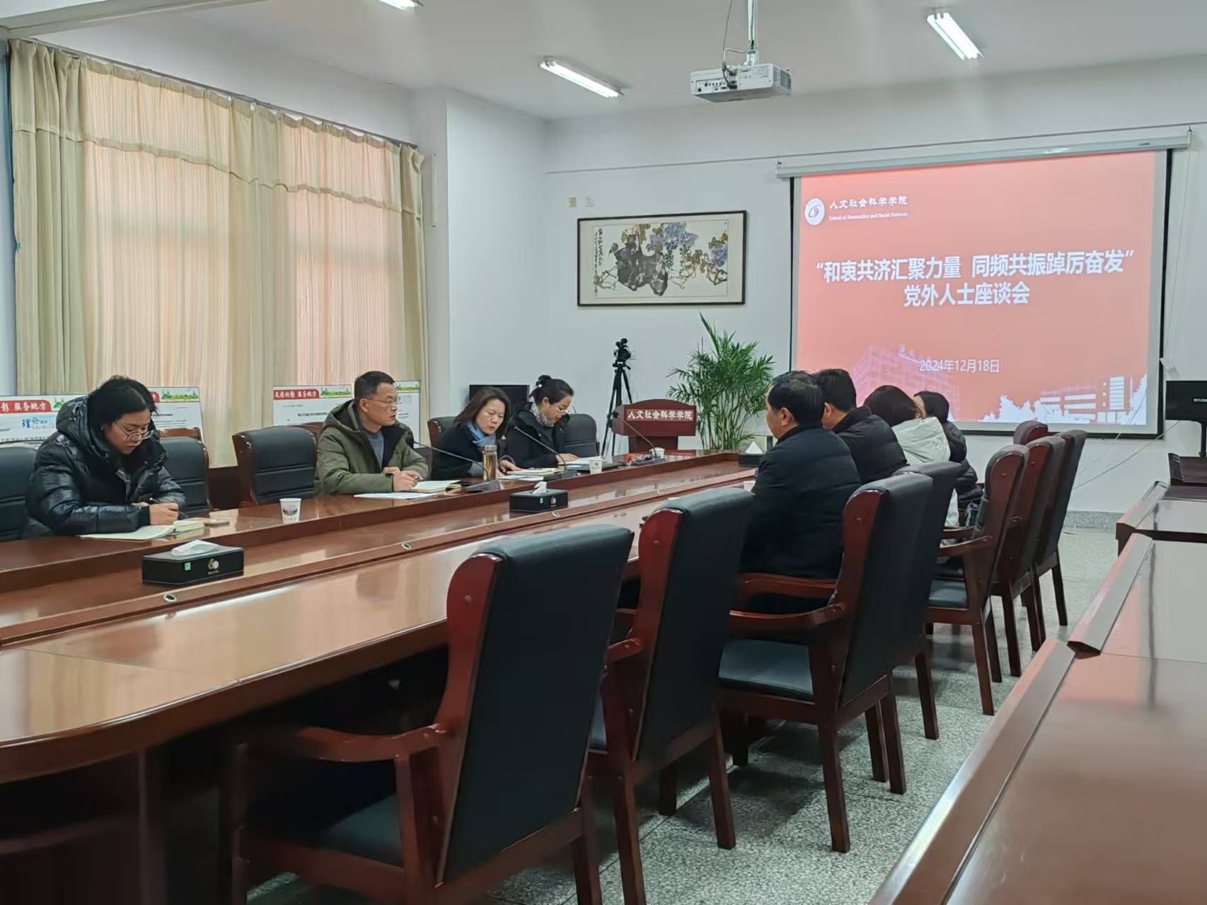 12月18日,在仁和楼A304会议室,人文学院党总支召开“和衷共济汇聚力量 同频共振踔厉奋发”党外人士座谈会。学院党总支书记何登溢主持会议。学院党总支委员会委员及部分民主党派、无党派人士代表参加。