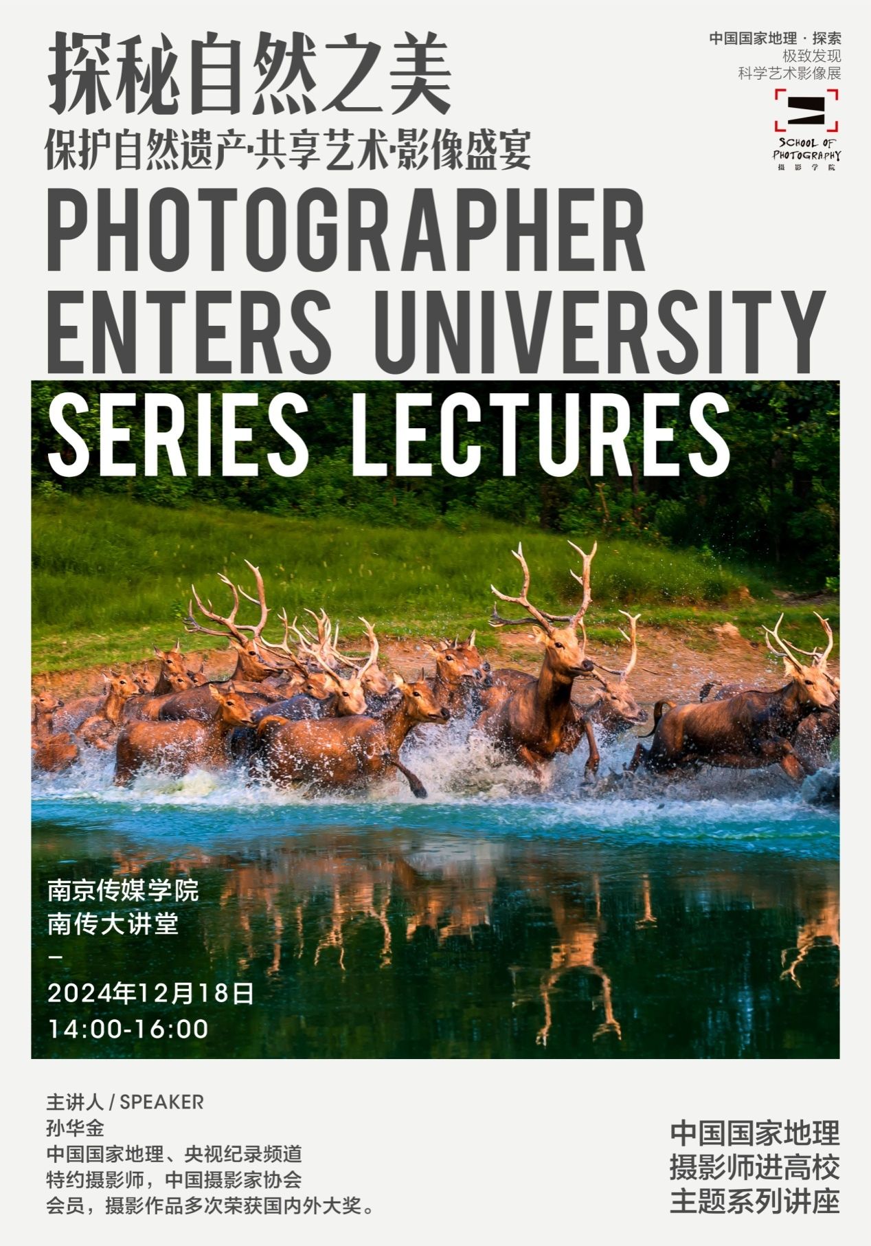 12月17至19日,应中国国家地理摄影师进高校主题系列讲座主办方的邀约,真人赌博游戏_澳门赌博网-app*官网团委孙华金副教授先后前往南京航空航天大学、南京传媒学院以及南京艺术学院三所高校,成功举办了以《湿地,我们共同的家园》为主题的摄影讲座,引领师生们步入了一场别开生面的视觉与知识盛宴。