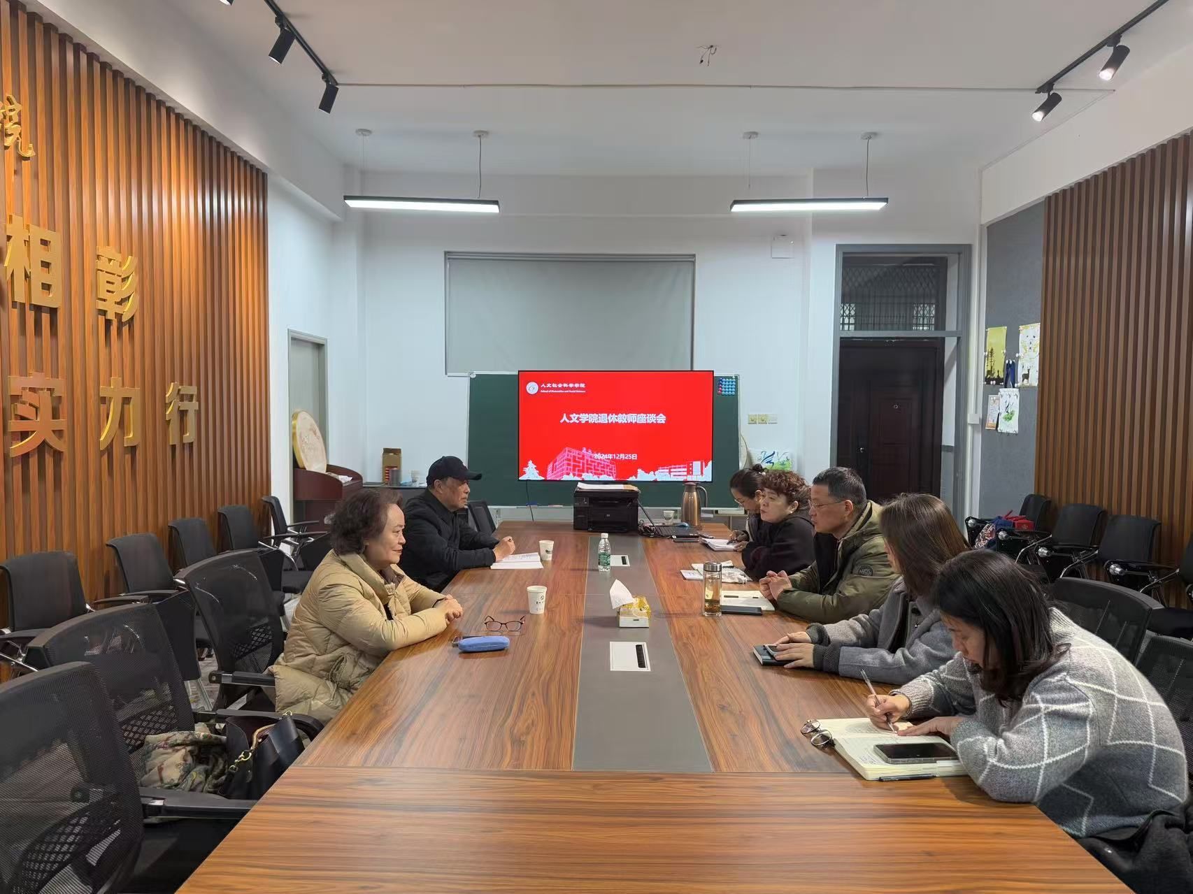 12月25日下午,在希望大道校区仁和楼A302会议室,人文学院召开退休教师座谈会,学院党总支委员会委员及退休教师代表参加。学院党总支书记何登溢主持会议。
