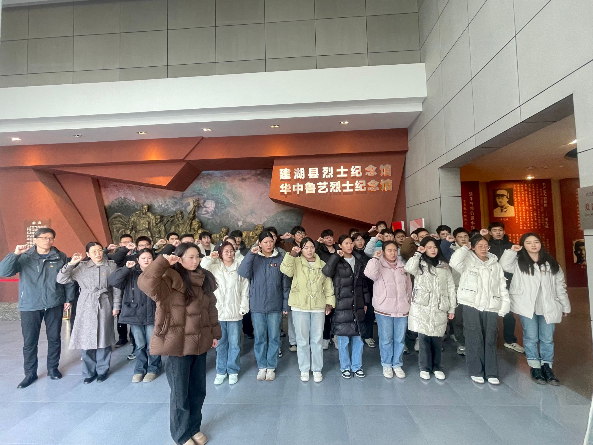 党员同志认真聆听华中鲁艺师生以及建湖县英雄烈士顽强抗战、不怕牺牲的英勇事迹,仔细参观各种历史文物和珍贵照片,共同回忆英雄先烈奋勇革命的光辉历程,深深地被先烈们无私奉献、不畏艰难、英勇奋斗的革命精神感染,深切缅怀为国牺牲、争取民族解放的革命先烈。全体党员同志面对鲜红的党旗,重温入党誓词,时刻提醒自己不忘初心、牢记使命,砥砺前行,为共产主义事业贡献青春力量。