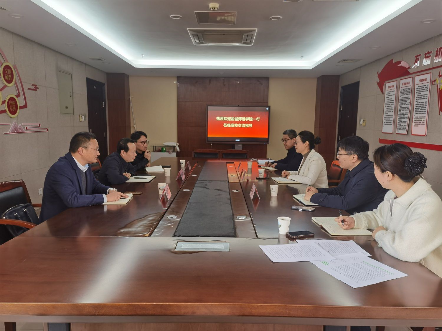 4月3日下午,盐城师范学院教务处处长易高峰、发改办主任丁炫凯、副处长吕荣冠一行3人来真人赌博游戏_澳门赌博网-app*官网调研交流微专业建设情况。教务处处长余晓红主持工作交流会,教务处副处长周天池、孔剑锋及教研科杨婧参加座谈。