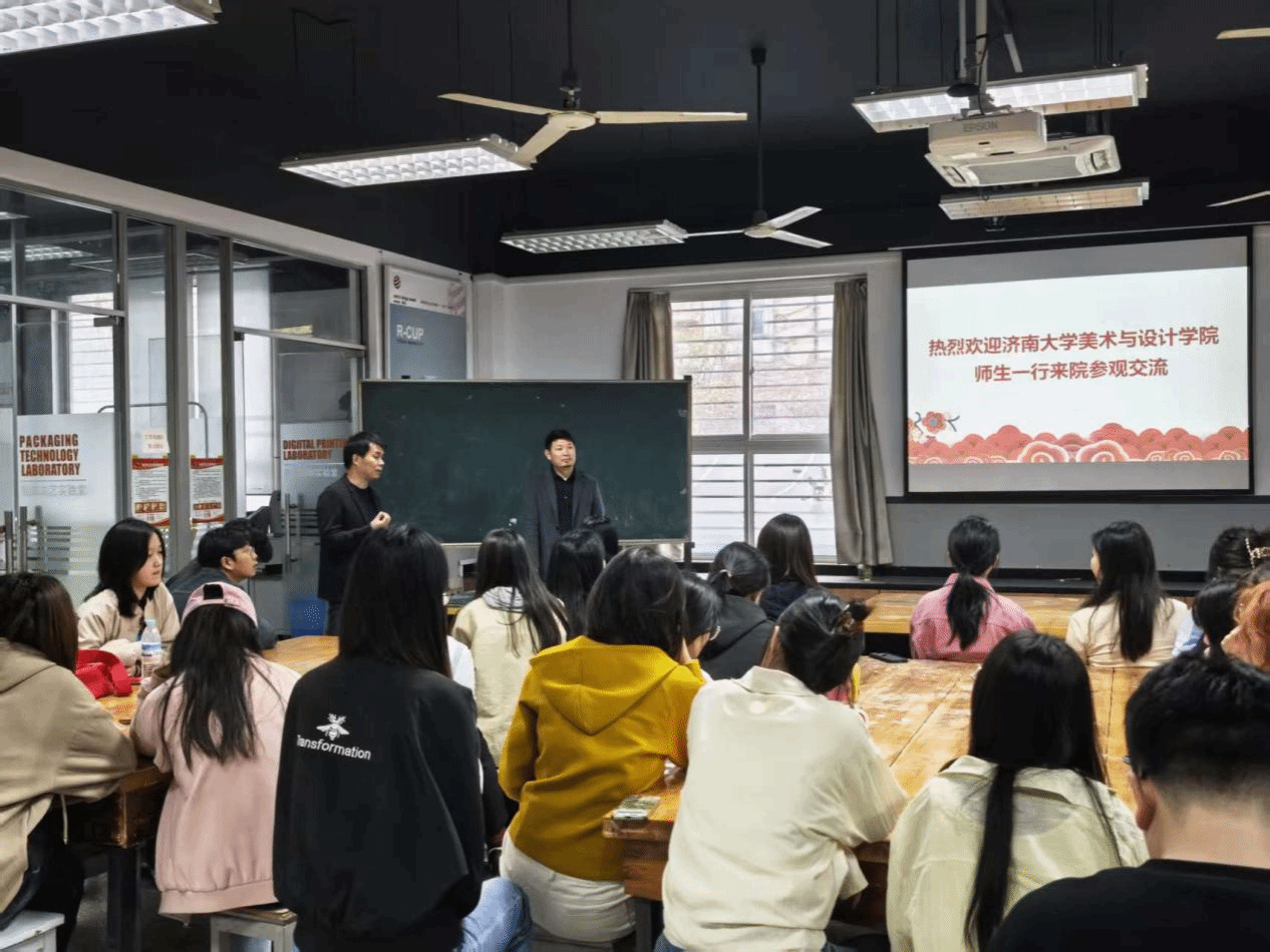 4月8日下午,济南大学美术与设计学院工业设计系主任林昇、副主任周意华带领工业设计专业57名学生到访真人赌博游戏_澳门赌博网-app*官网设计艺术学院,开展实践教学调研交流活动。设计艺术学院院长张军、产品设计系主任钱峰、实验室中心主任戚凤国等热情接待。双方围绕产品(工业)设计专业学科发展、教学创新与人才培养等方面内容进行了深入交流。