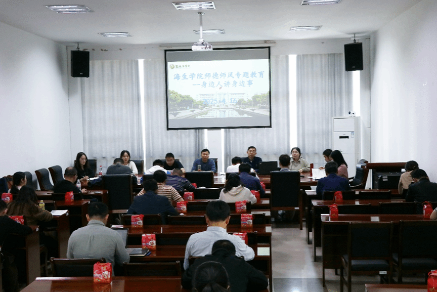 为扎实推进新时代教师队伍师德师风建设,进一步提升教师队伍思想政治素养和职业道德水平,4月16日下午,海生学院在会议室组织师德师风学习教育,开展“身边人讲身边事”活动,邀请副教授张明明和兼职辅导员夏斯蕾作分享。会议由党总支书记高留才主持,院长彭斌和全体教职工参加。