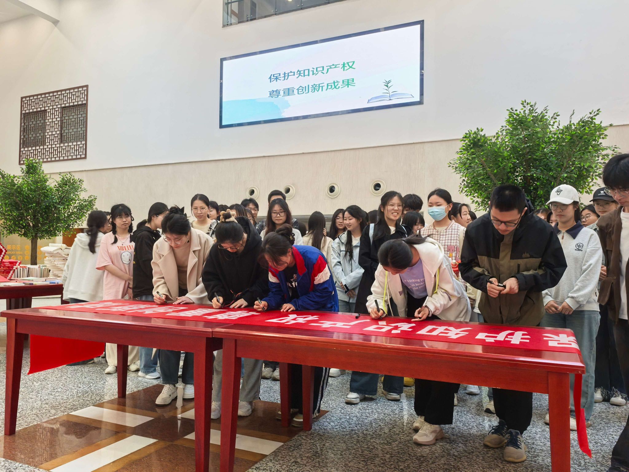 为迎接第25个世界知识产权日,4月25日下午,科学技术处联合图书馆、大学科技园在图书馆二楼大厅举办知识产权展览签名活动。科学技术处副处长陈林与师生代表参与现场互动,并在“保护知识产权,尊重创新成果”的横幅上签名。
