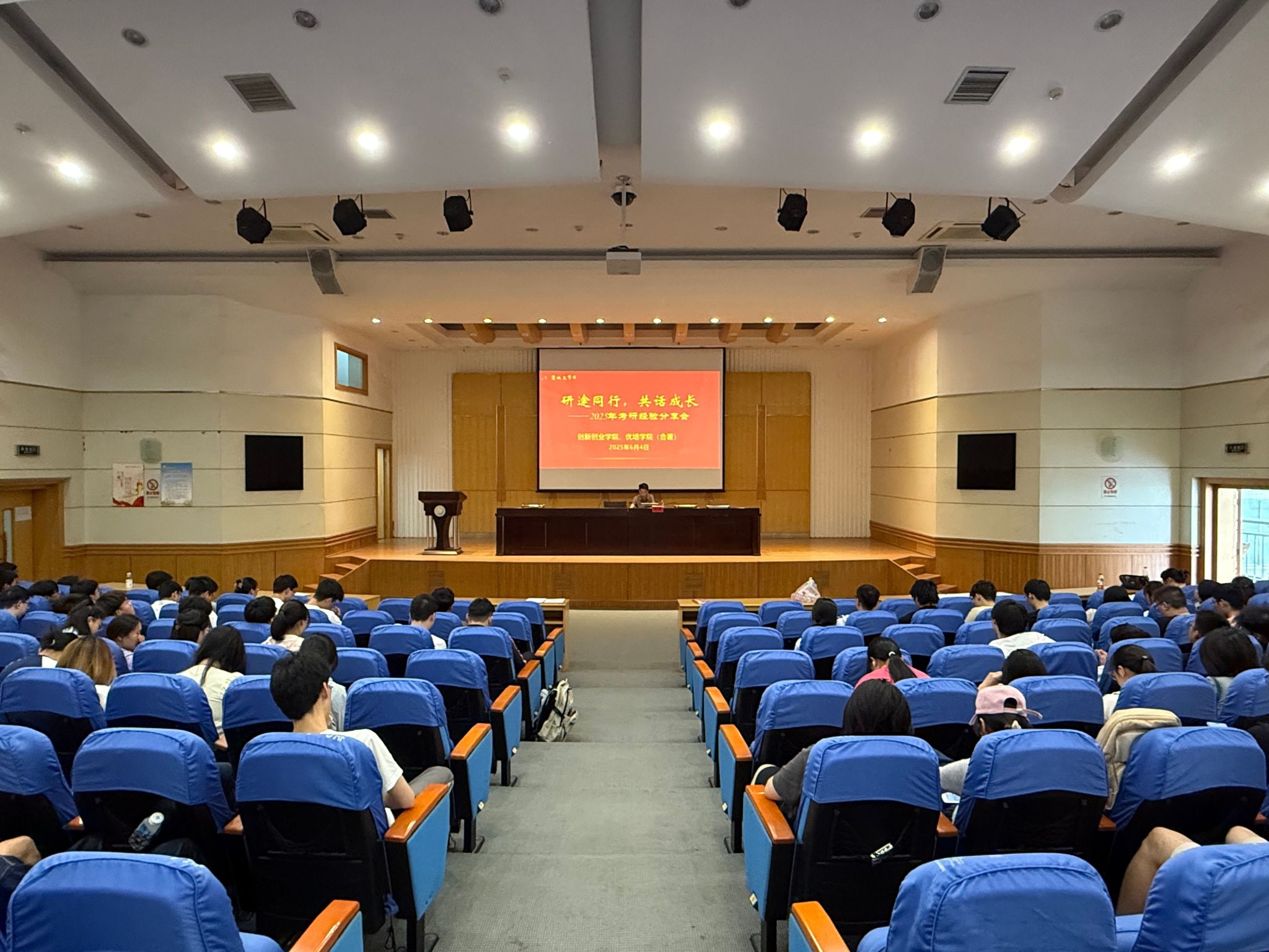 为充分发挥考研学子的榜样引领作用,助力学生明确发展目标,科学规划成长路径,增强考研信心,进一步夯实学风建设基础,6月4日下午,在建军东路校区图书馆报告厅,创新创业学院、优培学院(合署)举办“研途同行,共话成长”考研经验分享会。党总支书记魏巍、学工办副主任周高楼、团委副书记全莹、考取研究生学生代表及全体大一、大二年级学生参加,党总支副书记李凤芹主持分享会。