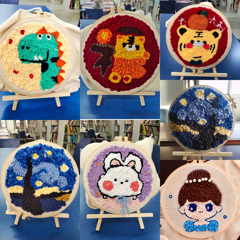 活动现场,大家一手拿着绷子,一手穿针引线,积极摸索,十分专注于这纯粹的手工劳动,遇到问题就虚心请教,老师们之间也相互切磋。随着针线的来回穿梭,一幅幅精美的图案逐渐显现。现场气氛热烈,妙趣横生,欢声笑语不断。
