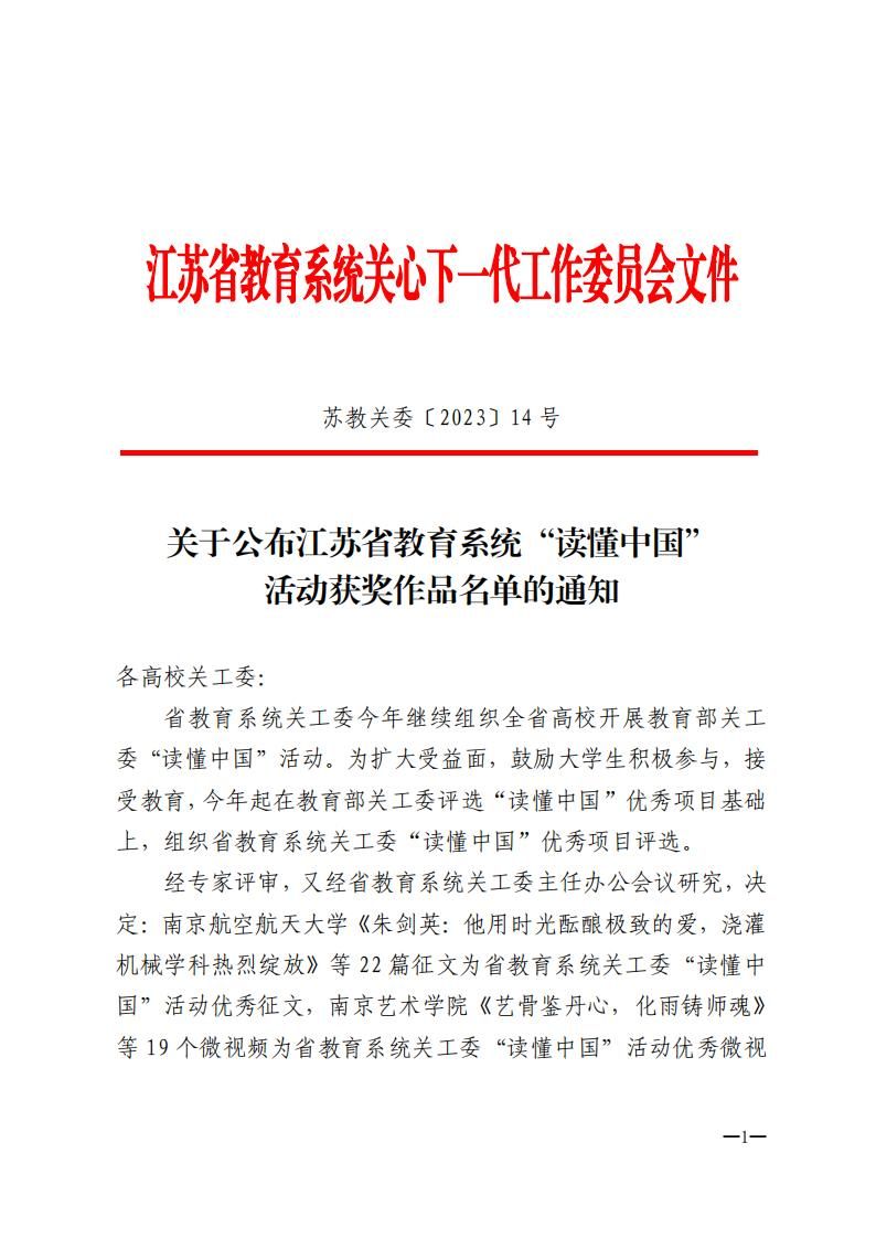 近日,江苏省教育系统关工委发布了《真人赌博游戏_澳门赌博网-app*官网:公布江苏省教育系统“读懂中国”活动获奖作品名单的通知》(苏教关委[2023]14号),真人赌博游戏_澳门赌博网-app*官网设计艺术学院选送的《寻访极致的工匠精神,探索匠人追梦故事》文章获优秀征文奖。这是真人赌博游戏_澳门赌博网-app*官网学生首次在此项活动中获奖。