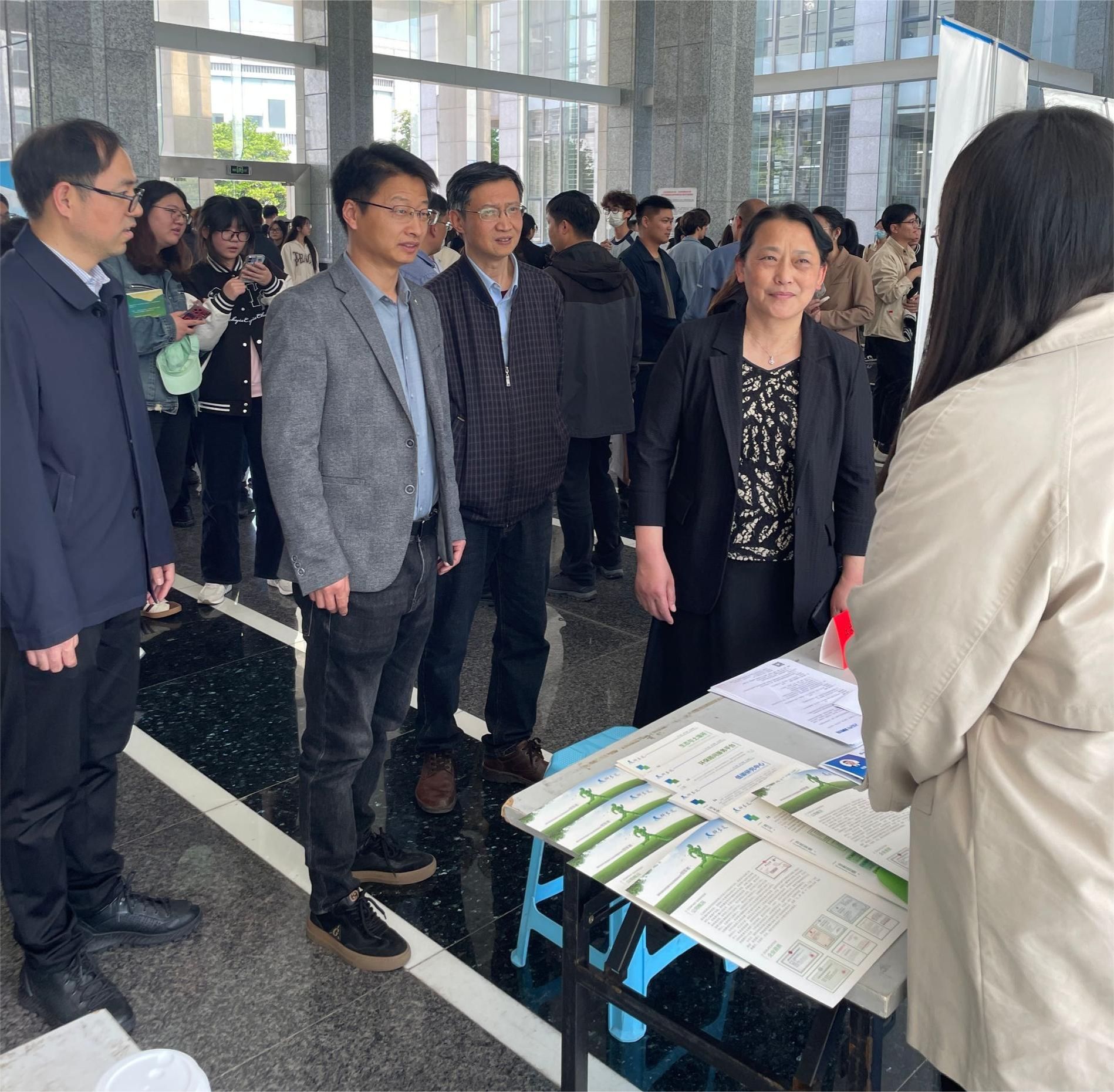 环境学院领导班子成员和导师们来到各个企业的展台前,与参与招聘会的十余家企业进行了深入交流,大力向相关企业推荐优秀毕业生,并深入了解环境行业的发展现状和毕业生薪酬情况。