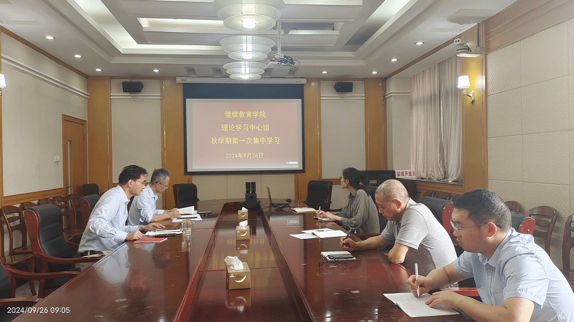 9月26日上午,在北校区图书馆301会议室,继续教育学院党总支举行秋学期第一次理论学习中心组集体学习暨党纪学习教育专题研讨会。党总支副书记、副院长杨军主持会议,中心组全体成员参加。