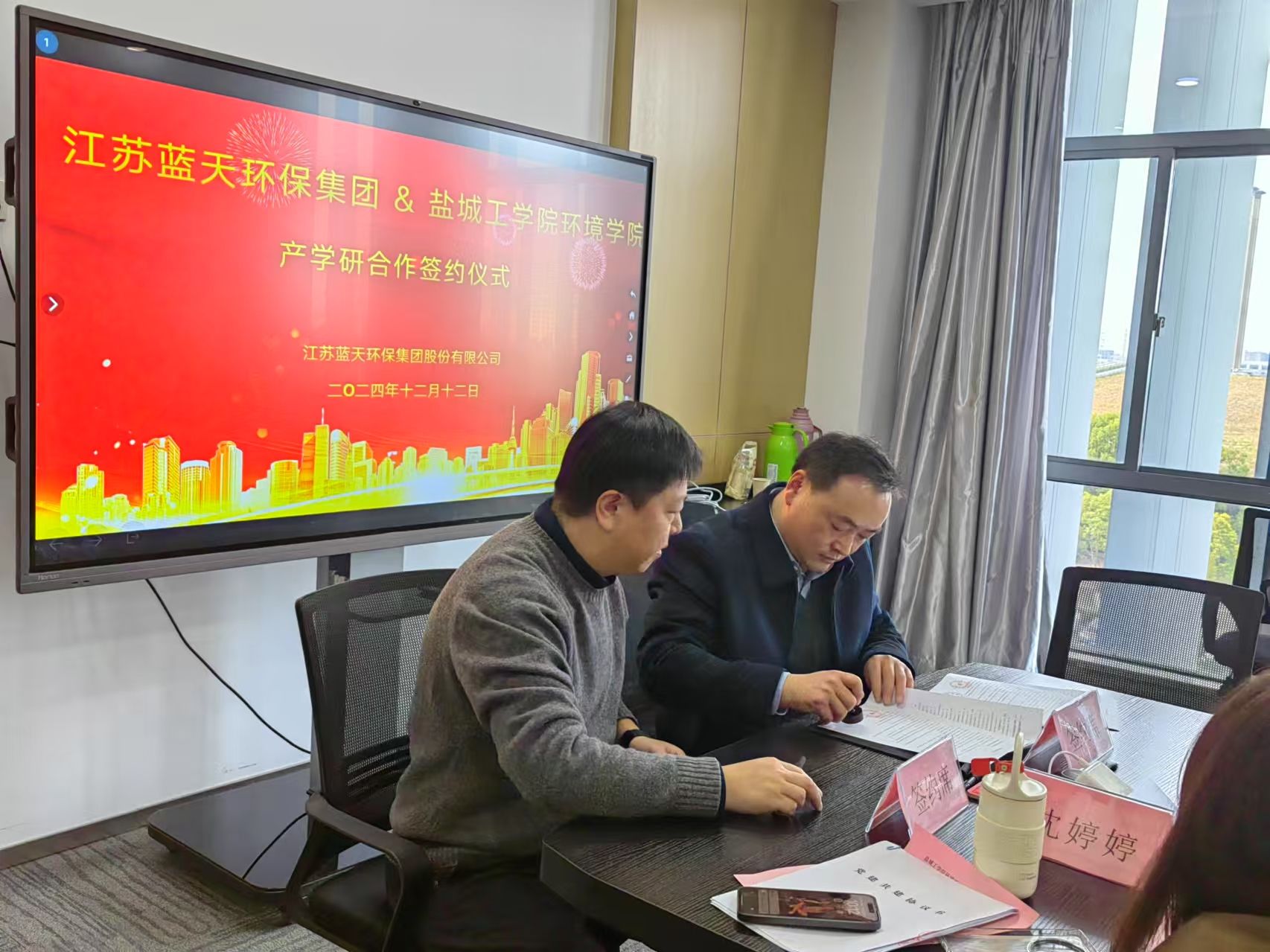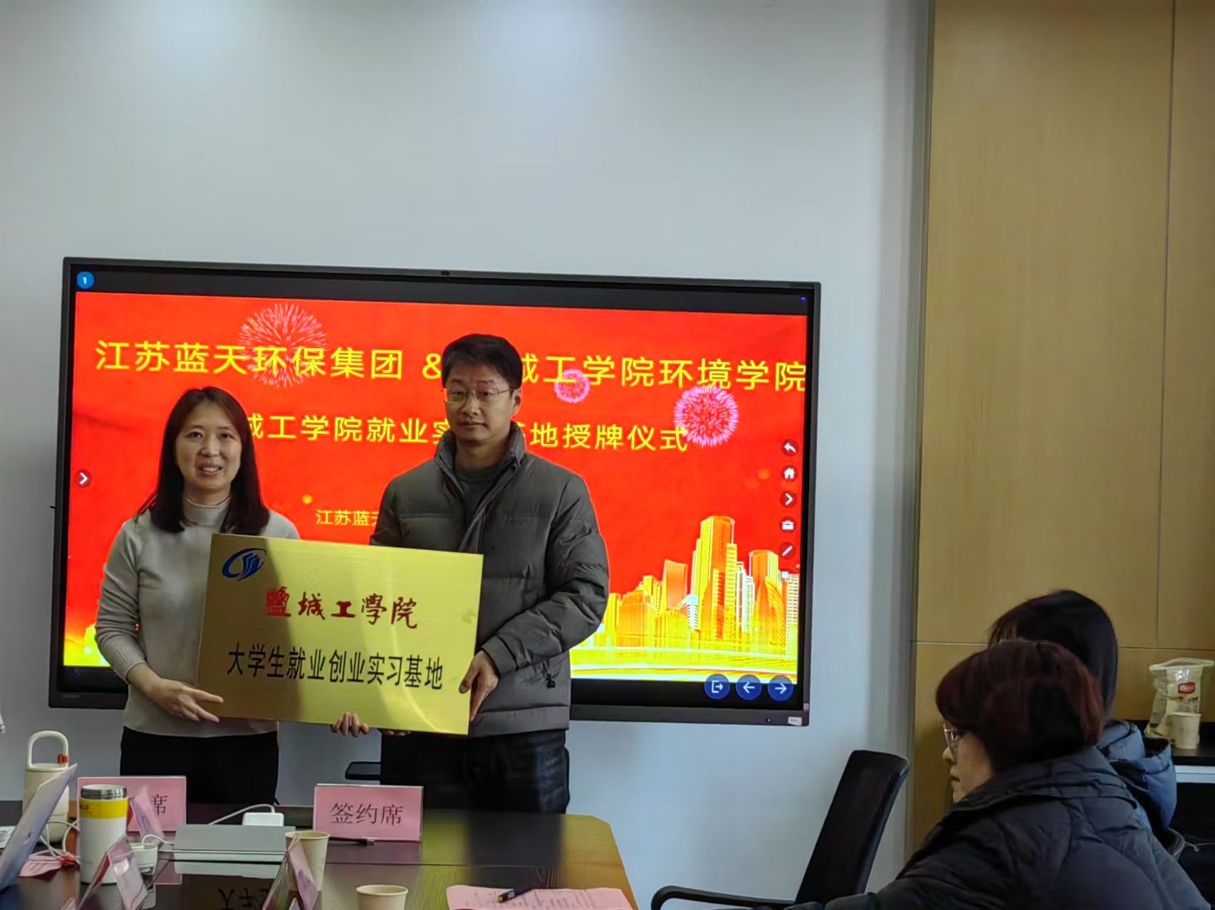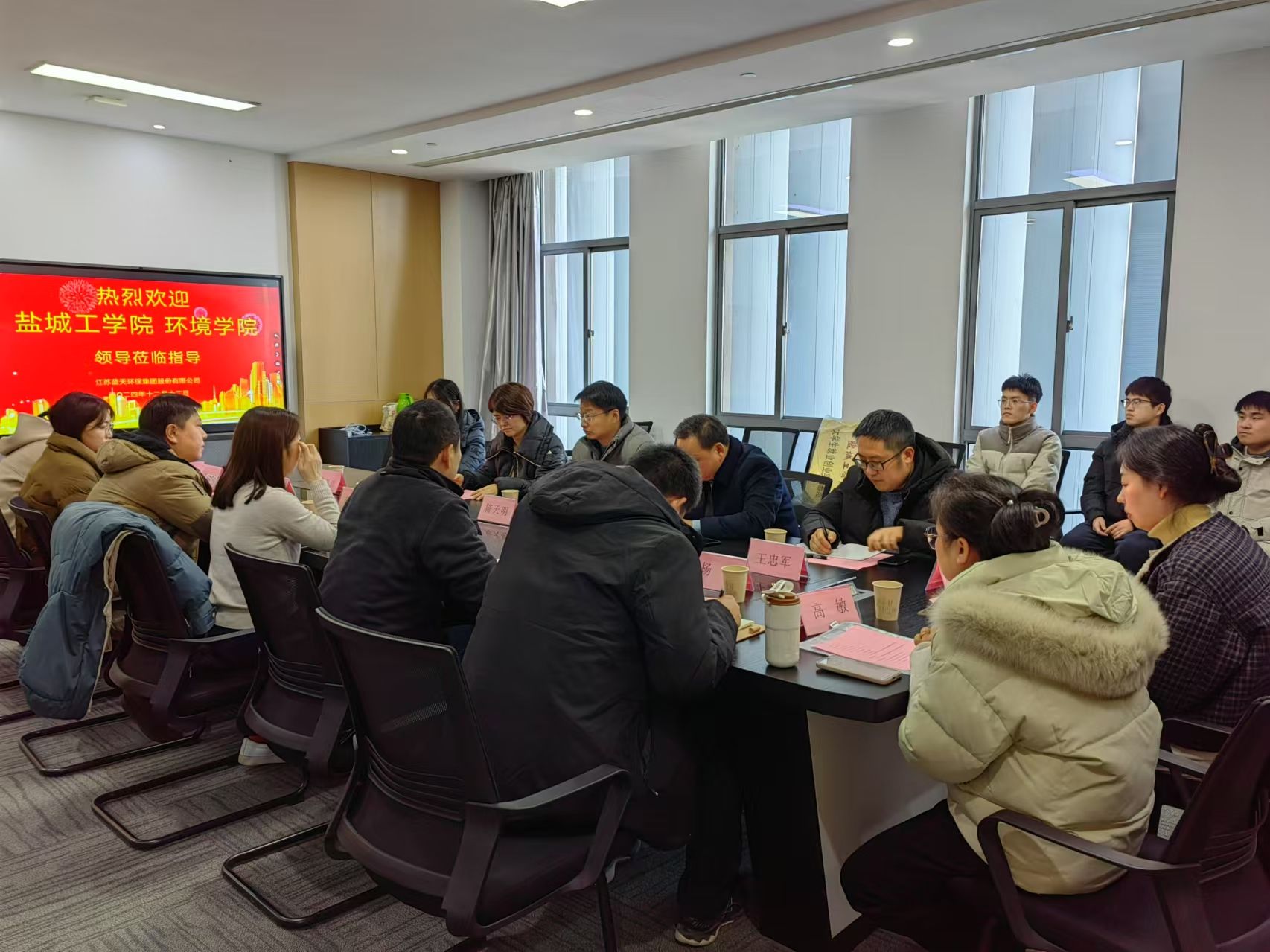 12月12日,为进一步发挥党建引领作用,深入贯彻落实真人赌博游戏_澳门赌博网-app*官网“访企拓岗促就业”专项行动工作要求,推进校企深度融合发展,拓展学生就业渠道,环境学院院长陈天明带队到江苏蓝天环保集团开展“访企拓岗促就业”专项行动暨党建共建活动。环境学院副院长杨百忍、党总支副书记王丽坤,江苏蓝天环保集团常务副总经理谭琨、环保技术部部长庄泉、人事行政总监刘歆成出席。学院博士和学生代表、企业相关部门负责人参加。