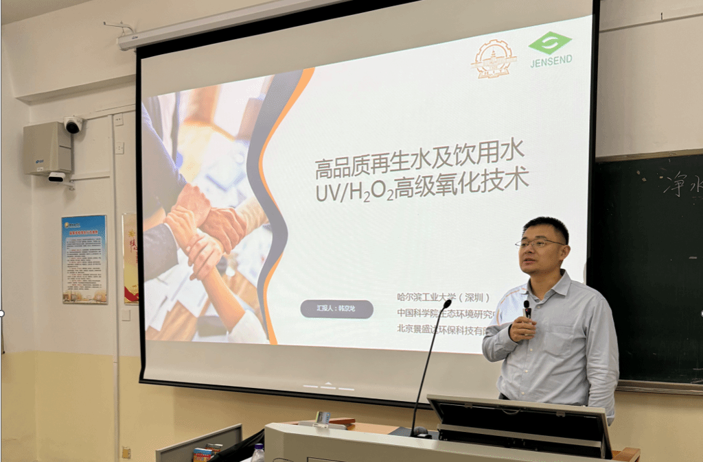 韩京龙教授在讲座中介绍了高品质再生水和饮用水处理的重要性及面临的挑战,详细阐述了UV/H2O2高级氧化技术的原理、优势及应用,并分享了在科研工作中的宝贵经验和成功案例。在讲座的过程中,同学们认真听讲,韩京龙教授围绕同学们感兴趣的内容耐心讲解,现场气氛热烈。同学们纷纷表示,通过此次讲座,不仅加深了对高品质再生水和饮用水处理技术的理解,还激发了对环境保护和水处理技术研究的兴趣。