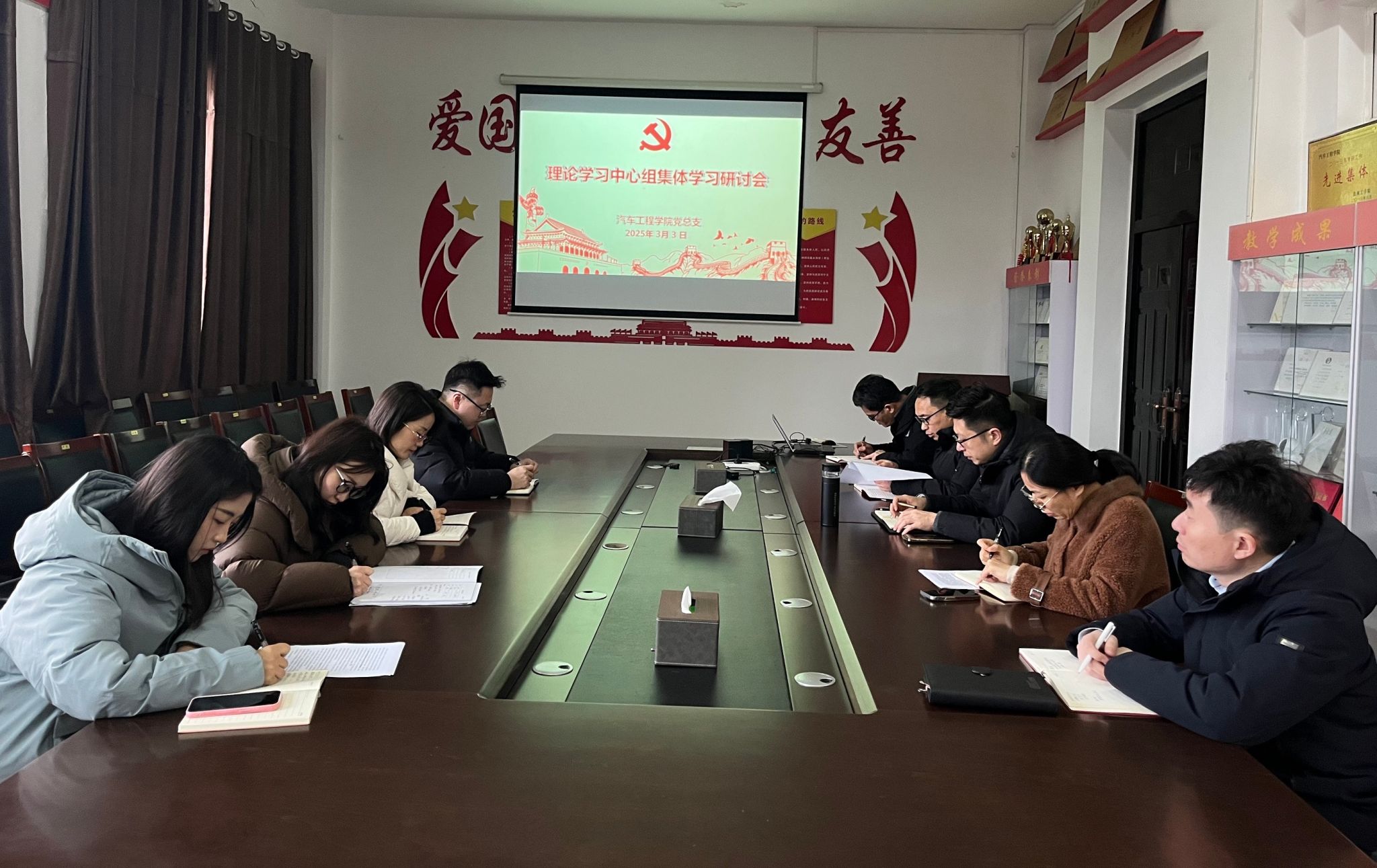 3月3日上午,汽车工程学院党总支理论学习中心组在机械馆A323会议室举行2025年春学期第一次集体学习研讨会,学习研讨《教育强国建设规划纲要(2024—2035年)》、《习近平总书记真人赌博游戏_澳门赌博网-app*官网:做好新时代党的统一战线工作的重要思想学习读本》以及《习近平总书记真人赌博游戏_澳门赌博网-app*官网:加强和改进民族工作的重要思想学习读本》。学院党总支书记陈青主持会议,理论学习中心组全体成员参加。