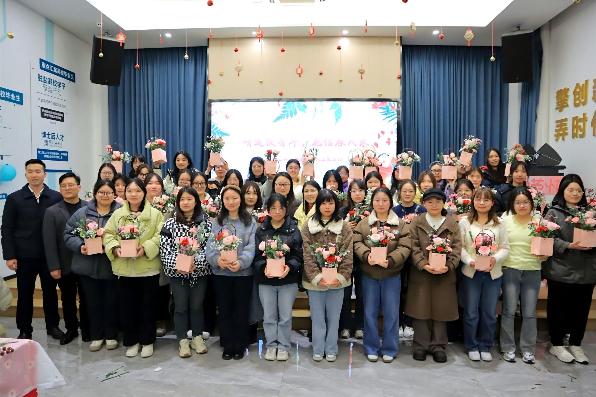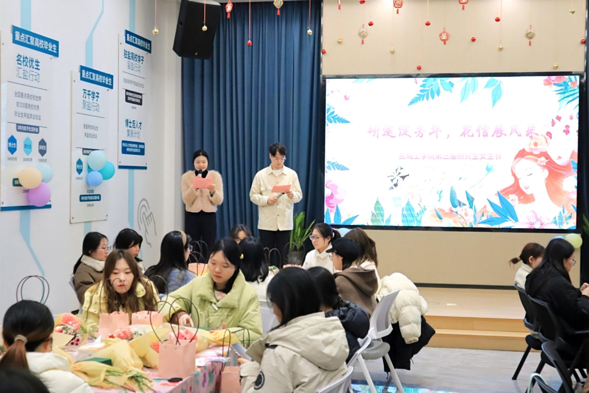 春风有信,花开有期,为了进一步丰富研究生的课余生活,营造浓厚的校园文化氛围,展现新时代女研究生朝气蓬勃、青春活泼的精神风貌,党委研工部于3月7日晚在盐龙湖研究生“一站式”学生社区共享中心举办“研途绽芳华,花信展风采”研究生女生节主题活动。党委研工部副部长、研究生院副院长姜华出席并致辞,研工部相关老师及2024级研究生女生参加活动。