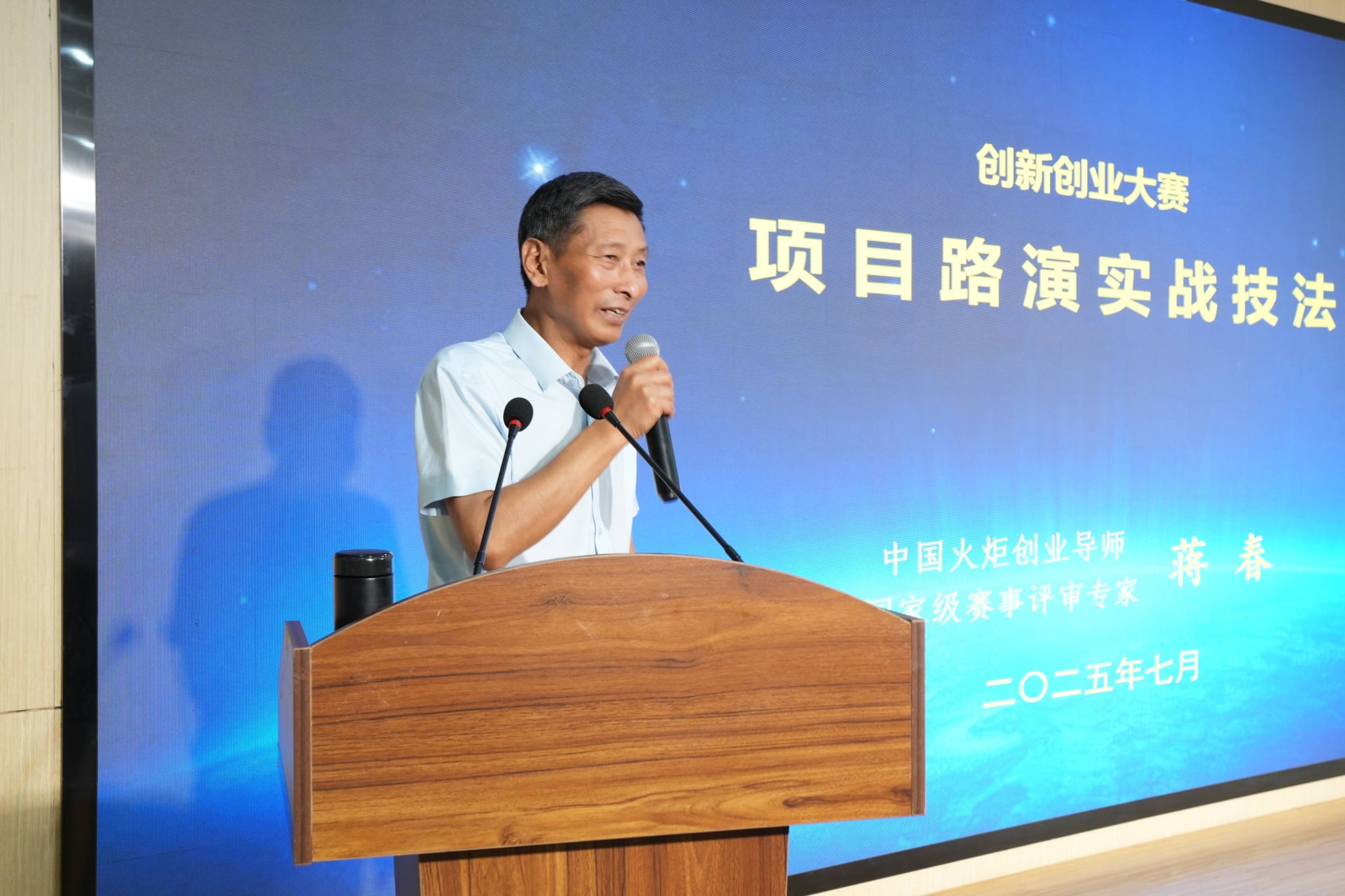 蒋春结合国家级及地方赛事评审经验,以“项目路演实战技法”为核心展开系统性授课。他围绕“如何把握大赛关键要点”“高效制作比赛 PPT”“精准撰写商业计划书”三大备赛核心需求,拆解实用技巧。在项目路演PPT制作上,强调标题需“开门见山、精准定性”,内容要聚焦技术与产品、行业与市场、商业模式等核心板块,同时避免陷入“企业推介会”“技术研讨会”等常见误区;在商业计划书撰写上,从封面目录、执行摘要到核心内容,明确逻辑架构与数据呈现的规范要求;在路演实战层面,提出 “六个问题”“五个力”评估框架,指导参赛者用“简捷语言 + 精致画面”讲好创新故事,突出核心技术壁垒与项目成长性。在互动交流环节,蒋春针对现场展示的参赛项目PPT,从内容逻辑和视觉呈现等多个维度出发,提出了详尽的优化建议。同时,他还细致入微地解答了现场观众针对大赛所提出的各类问题。
