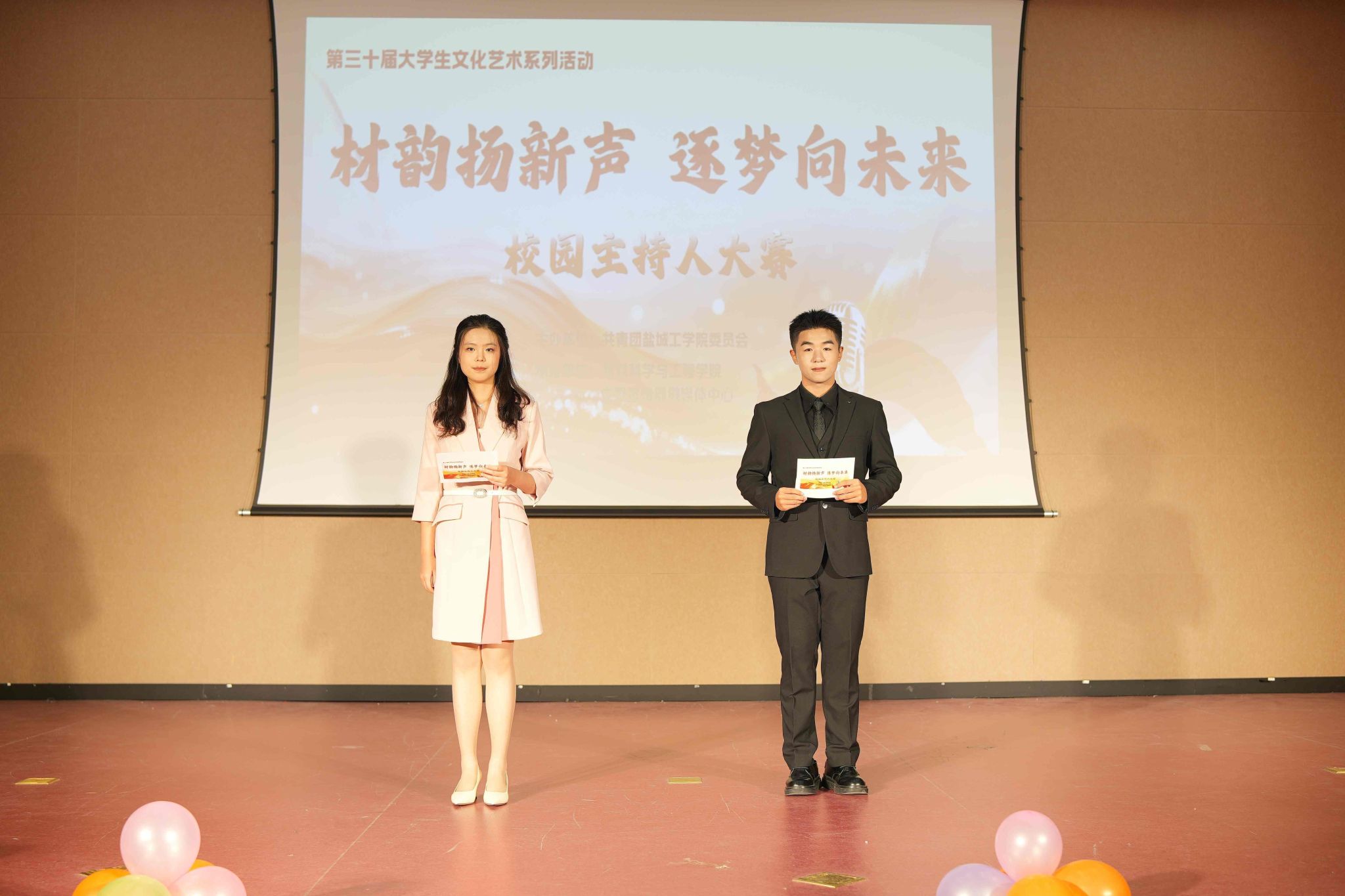 11月26日,由共青团真人赌博游戏_澳门赌博网-app*官网委员会主办,材料学院与党委宣传部融媒体中心联合承办的第三十届校园文化艺术节子项目“材韵扬新声,逐梦向未来”校园主持人大赛决赛,在知达楼五四报告厅举行。学生处副处长马晓英、校团委副书记胥爱国、材料学院党委副书记温崇明、党委宣传部网络思政科科长江莹、融媒体中心指导老师谷小川受邀担任评委,材料学院团委副书记袁梅统筹现场组织工作,全校400余名师生到场观赛。